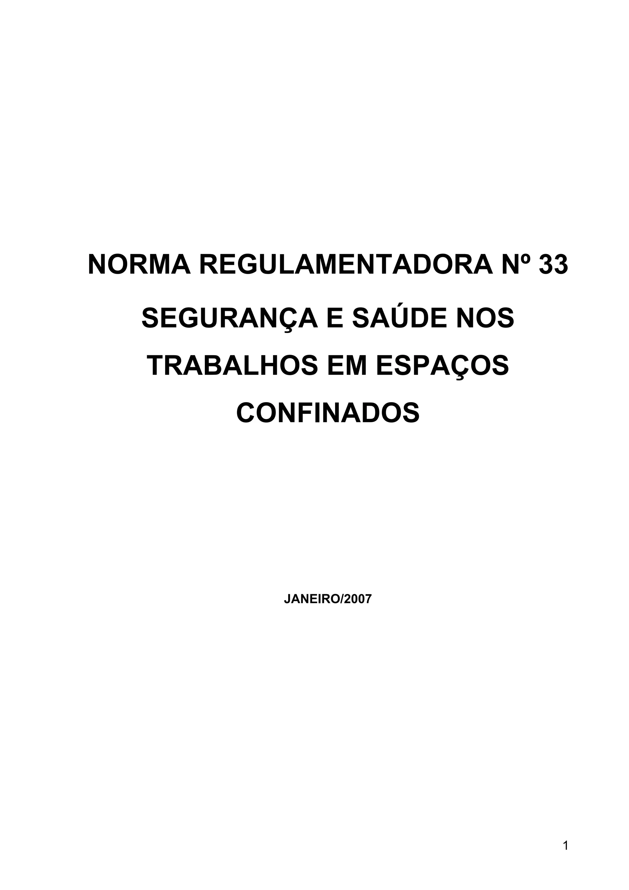 1. A Norma Regulamentadora no 33 estabelece requisitos para garantir a segurança e saúde de trabalhadores em espaços confinados.