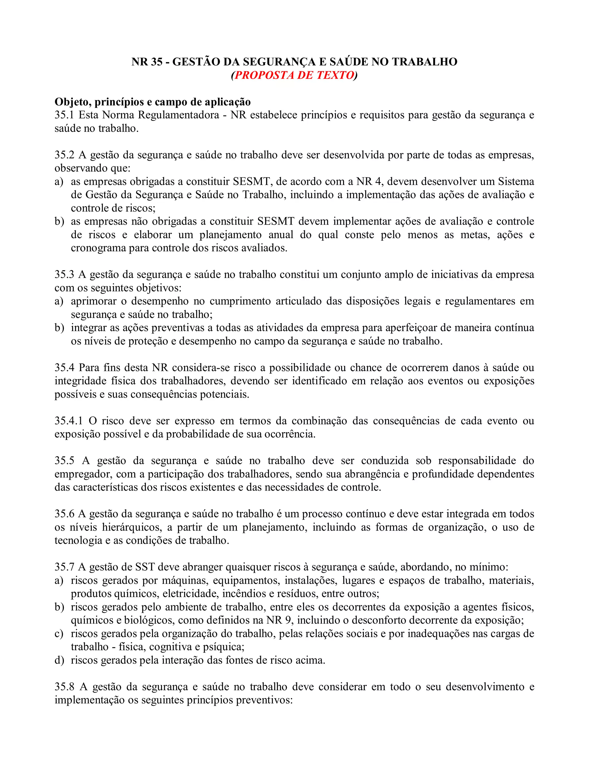 Este documento estabelece princípios e requisitos para a gestão da segurança e saúde no trabalho. Todas as empresas devem avaliar e controlar riscos, e as maiores devem implementar um Sistema de Gestão de Segurança e Saúde no Trabalho. O objetivo é aprimorar o desempenho na segurança, integrar ações preventivas em todas as atividades e melhorar continuamente os níveis de proteção dos trabalhadores.