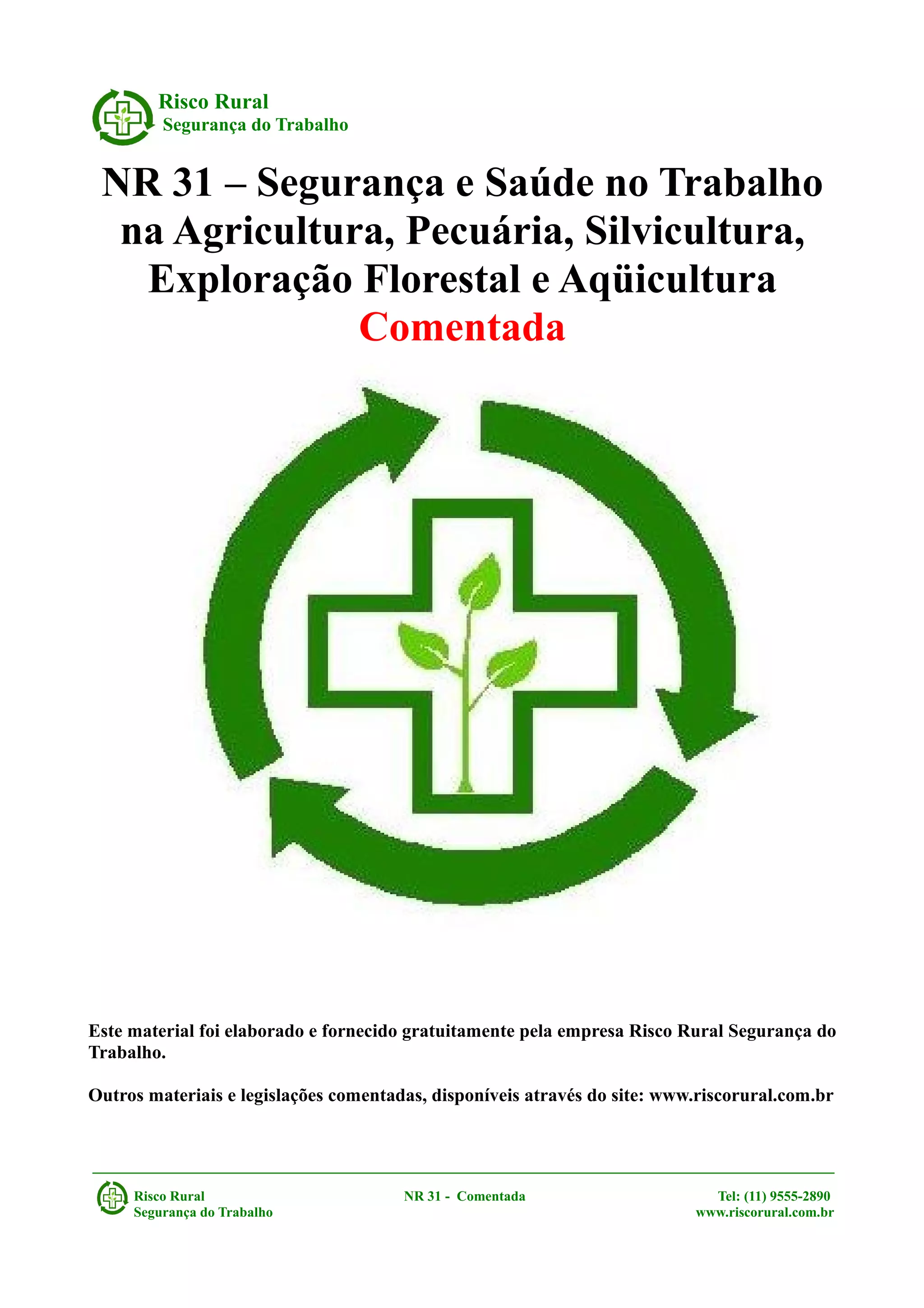 Este documento descreve as atividades e objetivos da empresa Risco Rural Segurança do Trabalho, que fornece consultoria, treinamentos e publicações sobre saúde e segurança no trabalho rural. A empresa busca auxiliar produtores rurais a cumprirem a NR 31, que estabelece normas sobre saúde e segurança nesse setor, de modo a melhorar as condições dos trabalhadores e aumentar a produtividade. O texto também resume os principais pontos da NR 31 sobre obrigações de empregadores e autoridades na garantia da saúde e segurança no trabalho
