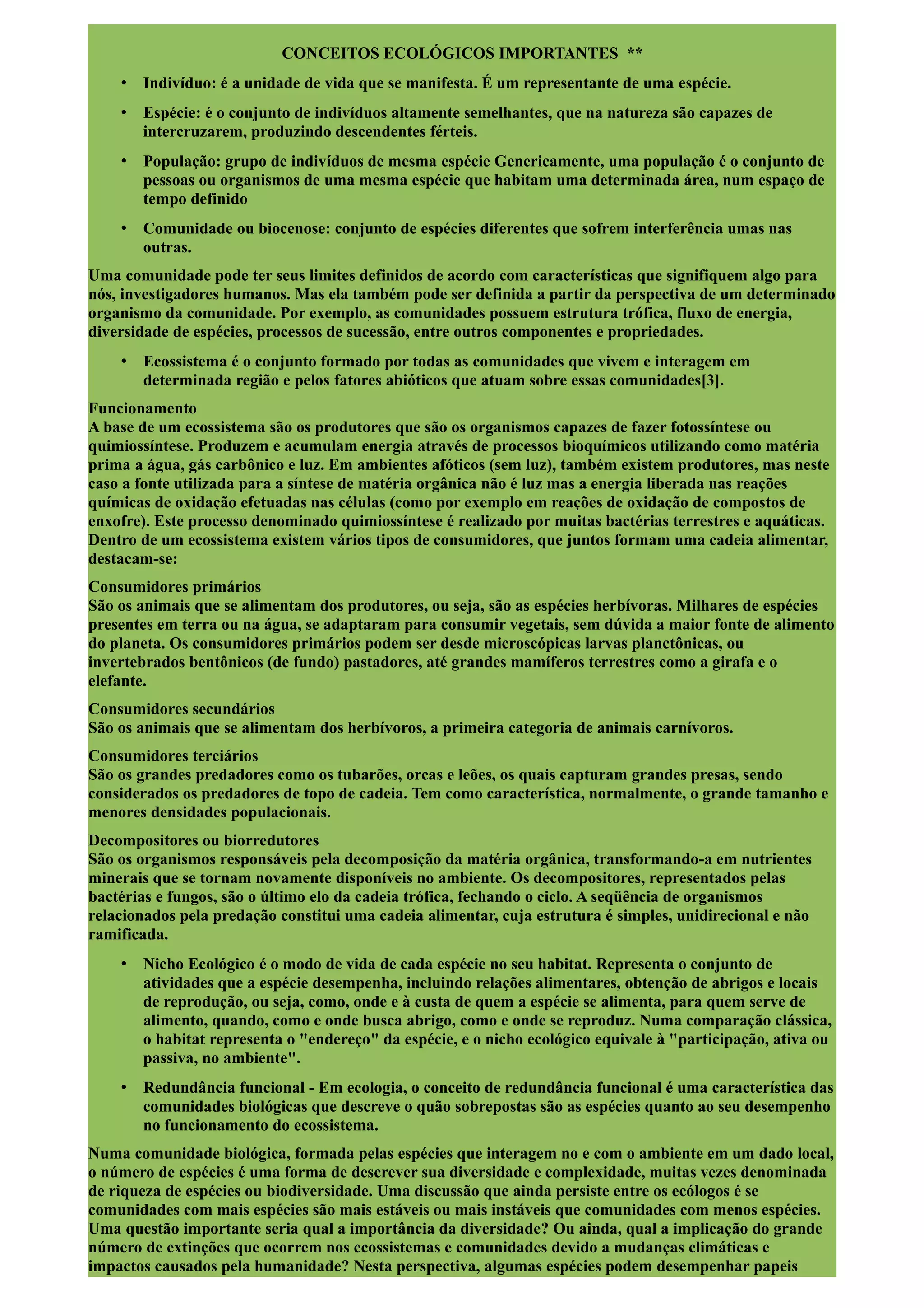 CONCEITOS ECOLÓGICOS IMPORTANTES**