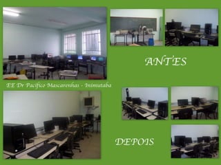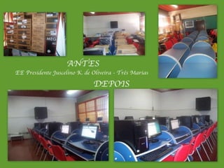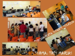 Este documento resume os resultados de treinamentos realizados pela Superintendência Regional de Ensino de Curvelo para servidores e professores sobre o uso de tablets, lousa digital e Google Apps. Mais de 40 blogs foram criados por cursistas e houve maior utilização do laboratório de informática pelos alunos da Escola Prefeito Walter Coelho da Rocha no Morro da Garça.