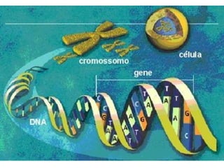 O núcleo celular contém o DNA, que controla a produção de proteínas e estrutura da célula. O DNA está contido nos cromossomos, que são encontrados em pares nos humanos. O cariótipo mostra os cromossomos característicos de cada espécie, incluindo 23 pares nos humanos, sendo 22 pares autossomos e um par de cromossomos sexuais.