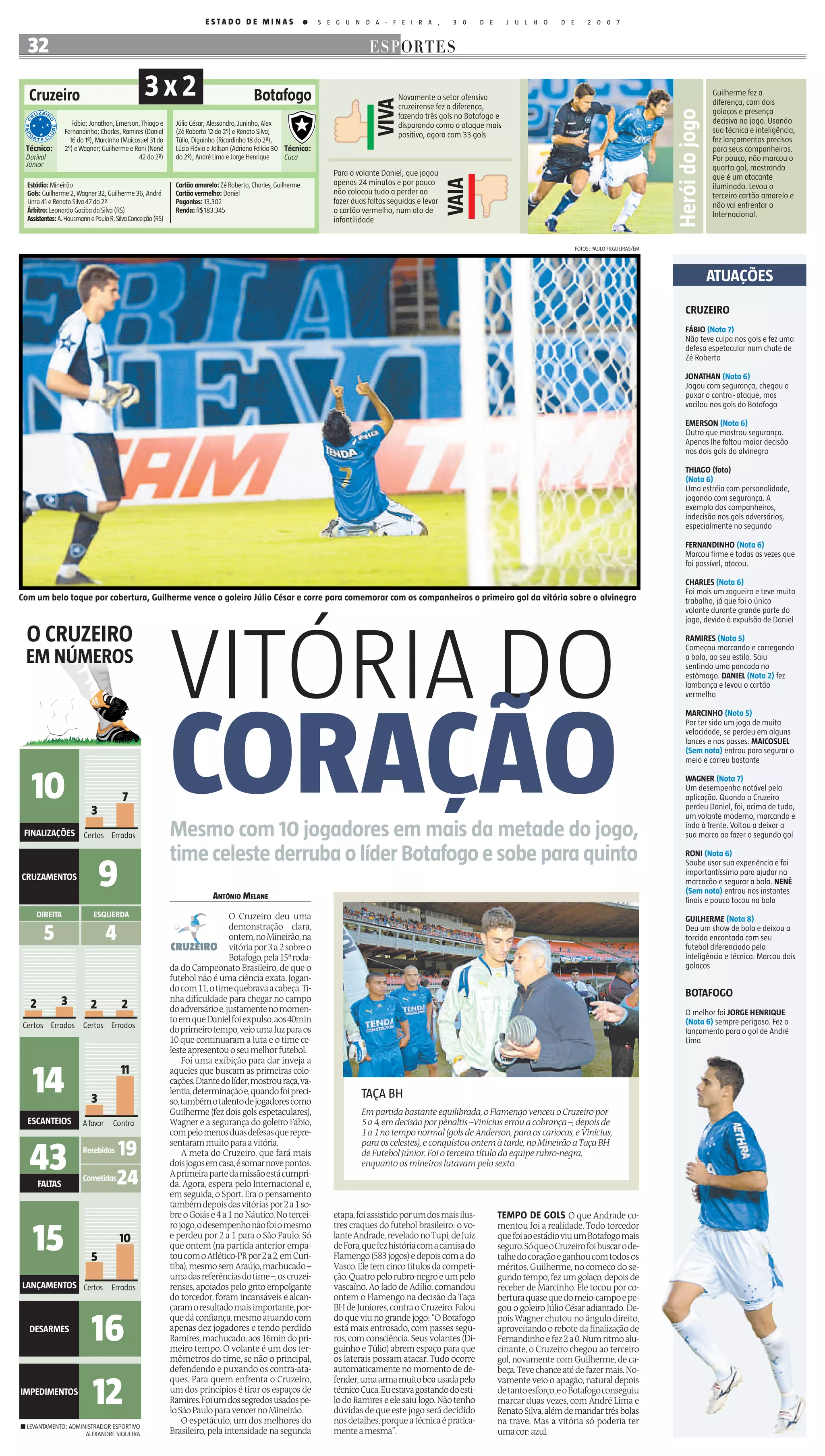 1) O Cruzeiro venceu o Botafogo por 3x2 no Mineirão com dois gols de Guilherme.