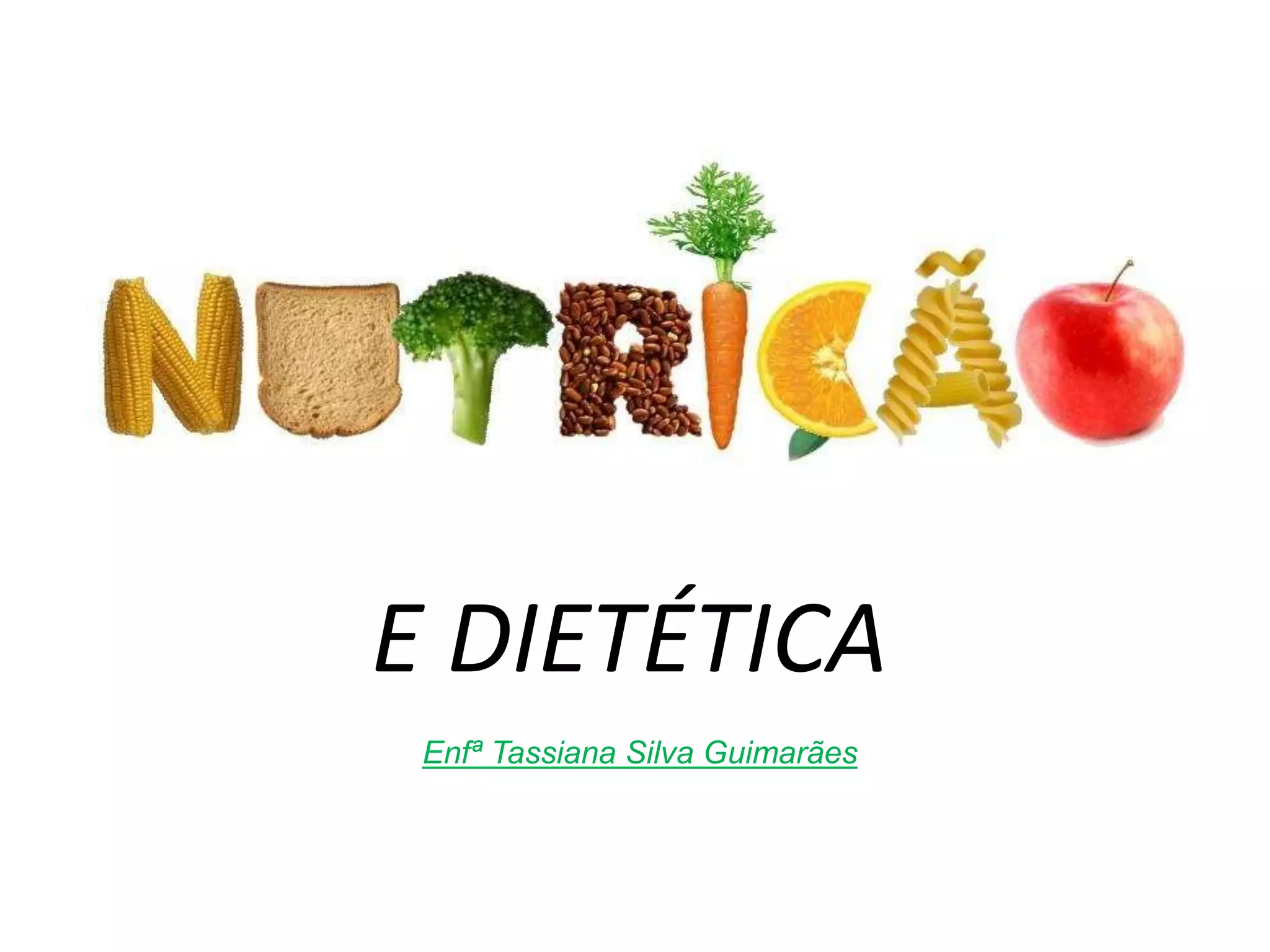 O documento discute os conceitos de nutrição e dietética, definindo-os como os processos pelo qual os organismos vivos recebem e utilizam nutrientes para manter suas funções e crescimento. Também define os principais tipos de nutrientes e alimentos, suas funções, assimilação e classificação de acordo com sua função no organismo.