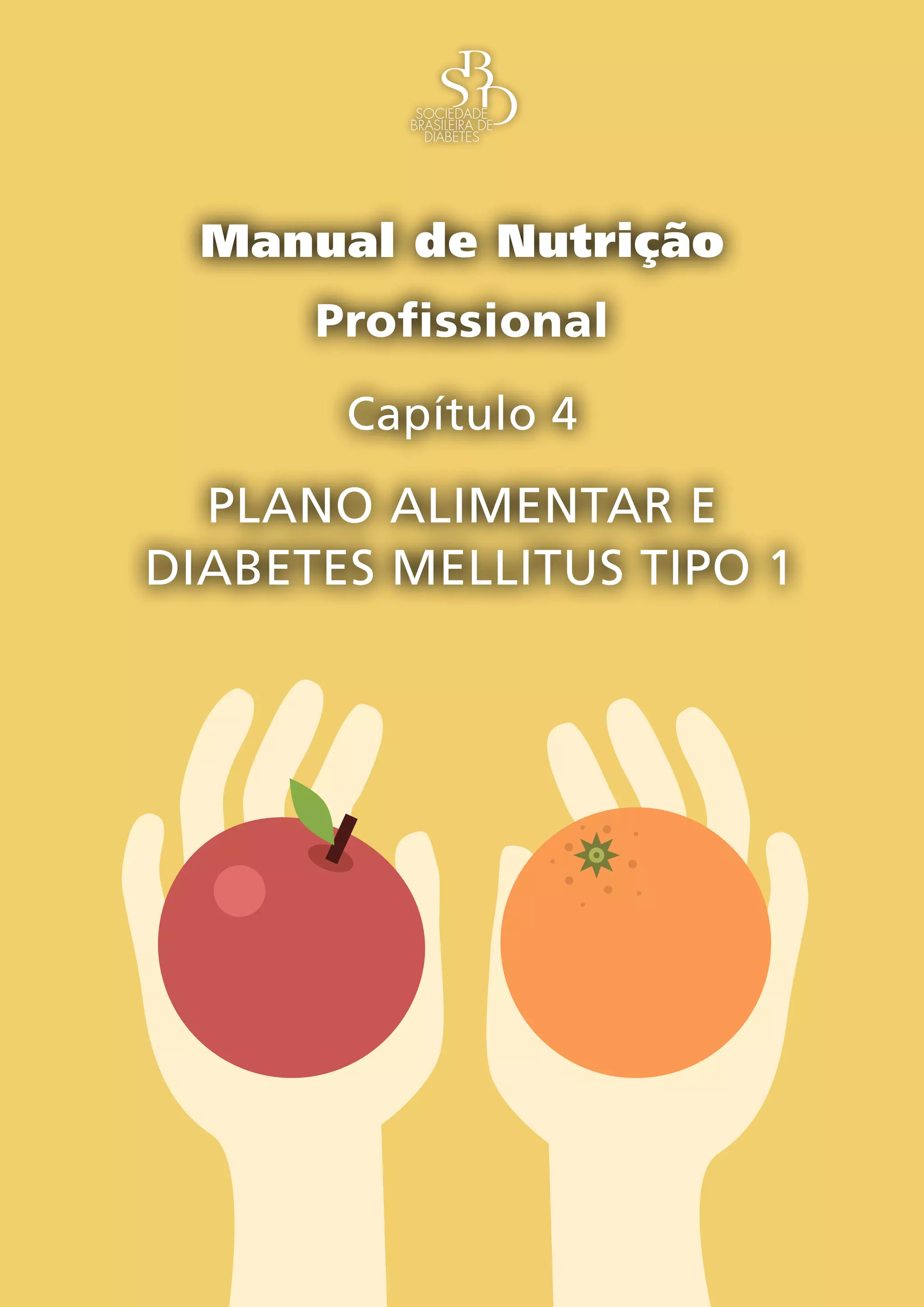 O capítulo discute diferentes métodos de terapia nutricional para portadores de diabetes tipo 1, incluindo a pirâmide alimentar, substituições e equivalências de alimentos, e contagem de carboidratos. A contagem de carboidratos é apresentada como uma estratégia eficaz que requer acompanhamento nutricional especializado e monitoramento constante da glicemia pelo portador de diabetes.