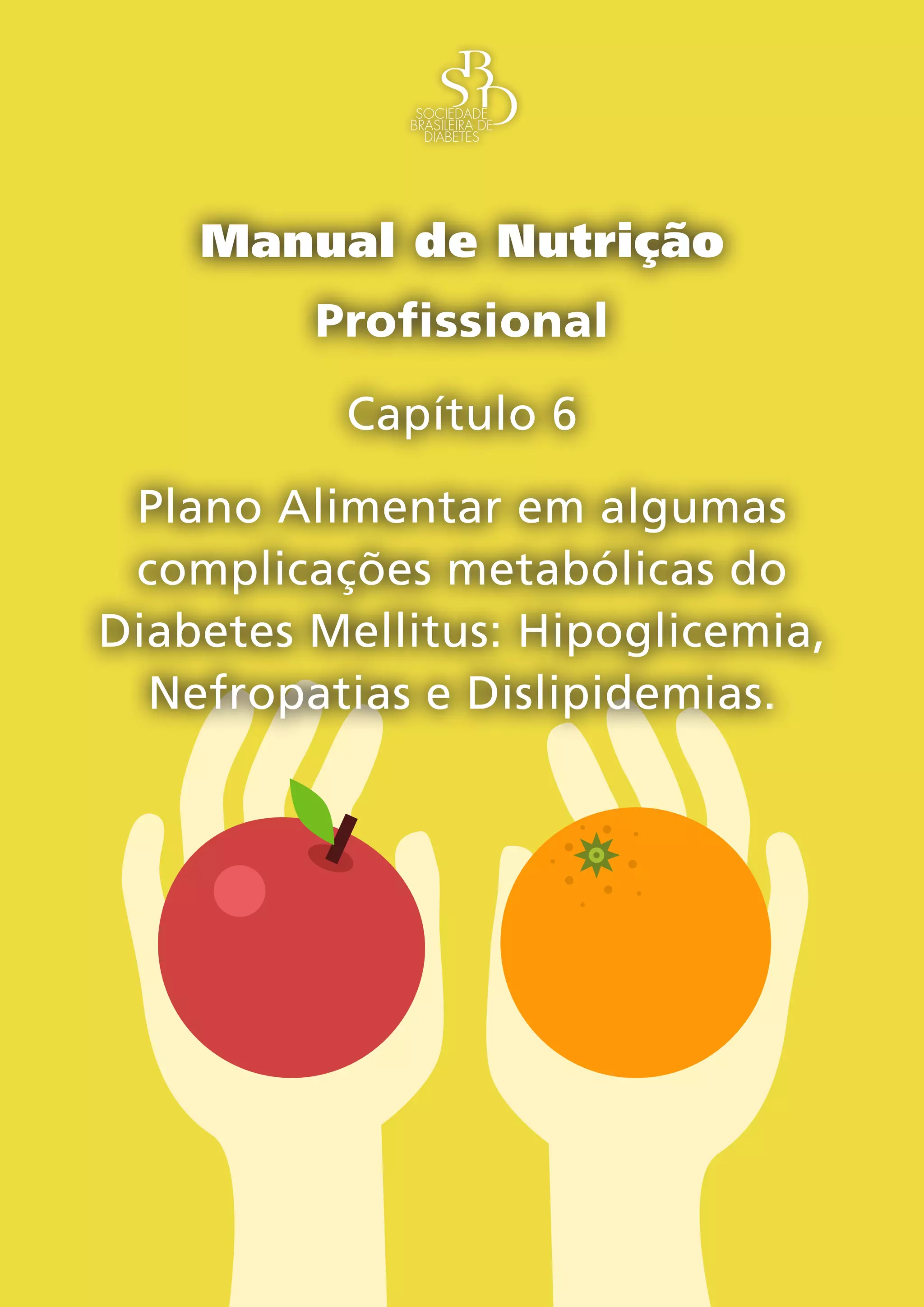 Este capítulo discute planos alimentares para complicações metabólicas do diabetes, como hipoglicemia, nefropatia e dislipidemias. A hipoglicemia é tratada rapidamente com a ingestão de carboidratos simples como açúcar ou suco. A nefropatia diabética causa dano renal progressivo e requer controle glicêmico rigoroso. As dislipidemias aumentam o risco cardiovascular e são comuns no diabetes tipo 2, requerendo modificações dietéticas.
