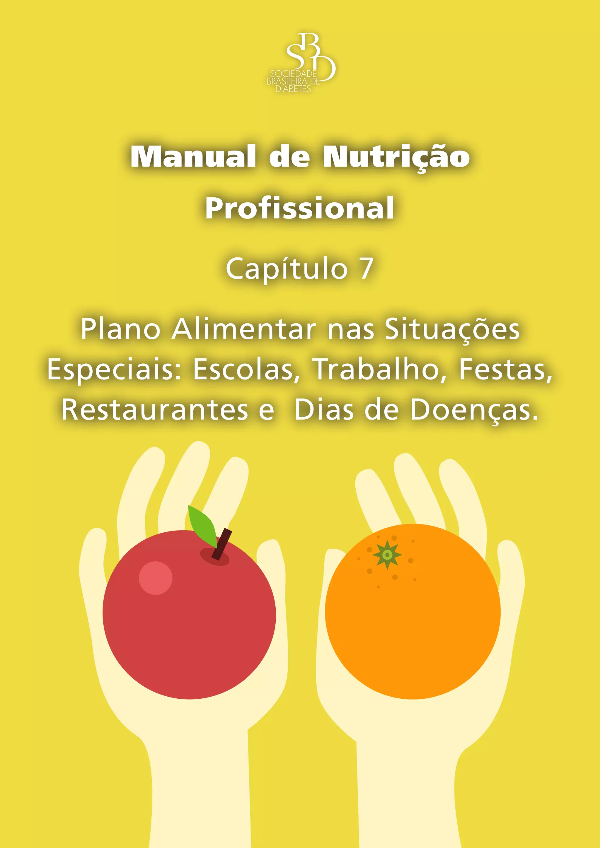 1) O capítulo discute planos alimentares em situações especiais como escola, trabalho, festas e restaurantes para pessoas com diabetes.