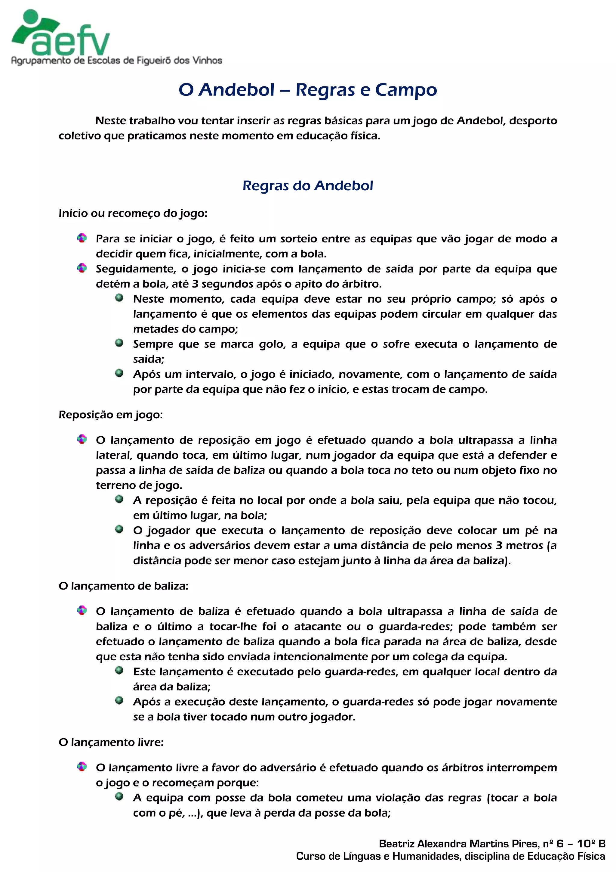 Neste trabalho vou tentar inserir as regras básicas para um jogo de Andebol, desporto