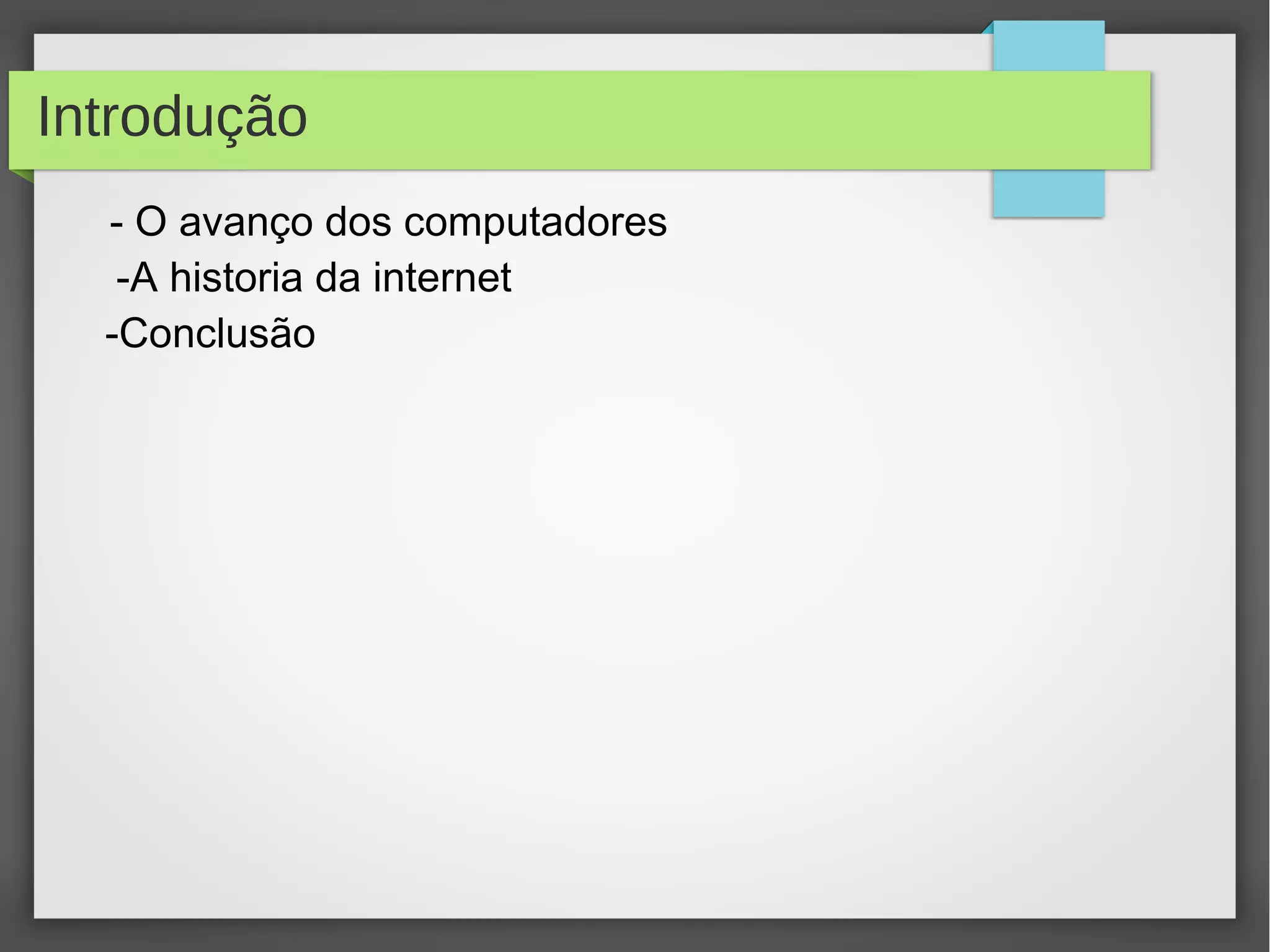 O documento descreve a evolução dos computadores desde os anos 1950 e o desenvolvimento da internet. Detalha que os primeiros computadores já realizavam cálculos complexos rapidamente e que, após 60 anos, os componentes mudaram muito. Explica também que a World Wide Web foi desenvolvida por Tim Berners-Lee em 1990, permitindo sites dinâmicos e visuais e fazendo a internet crescer rapidamente, sendo talvez a maior criação tecnológica depois da televisão na década de 1950. Por fim, conclui que hoje a internet é muito importante para todos