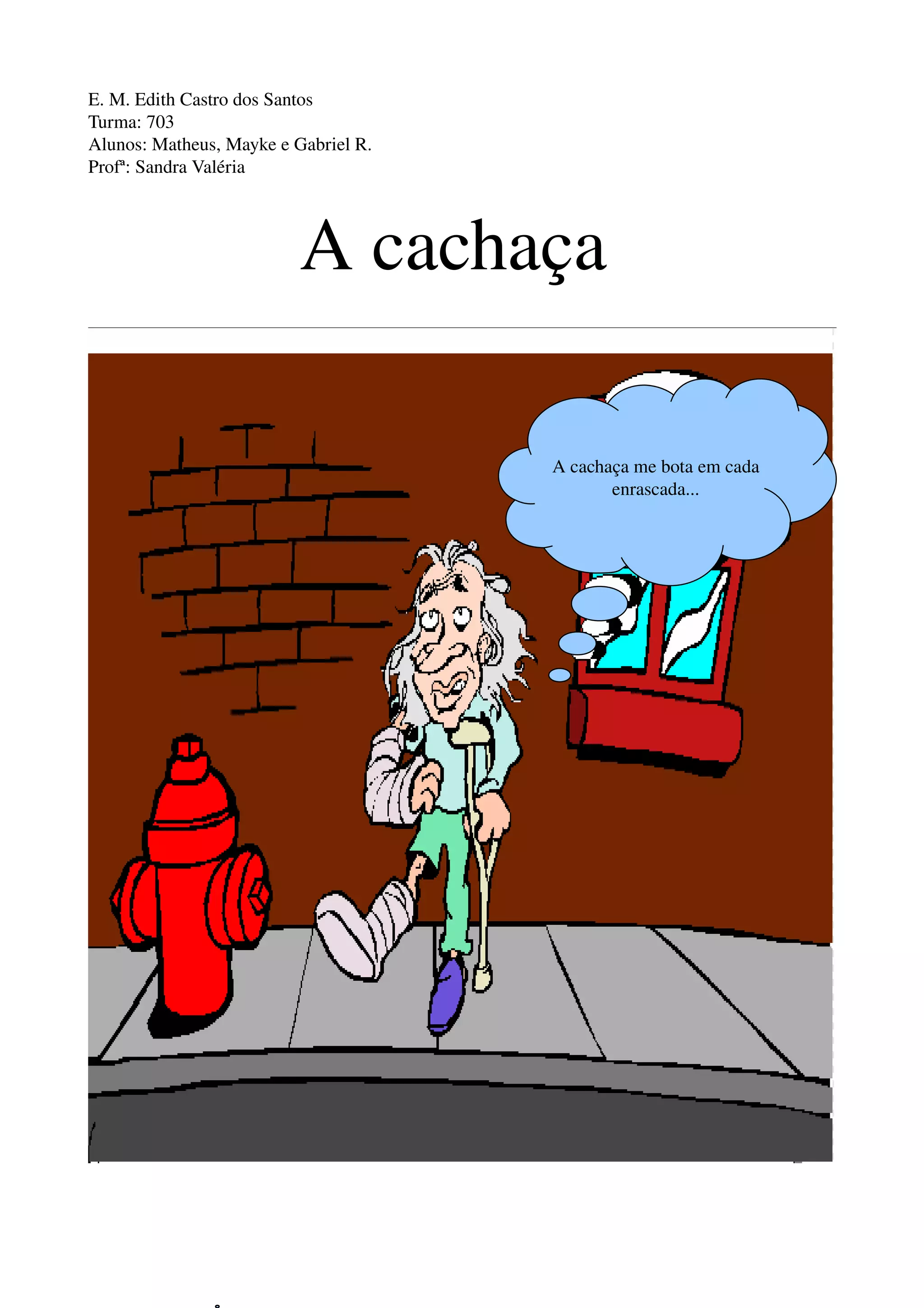 Uma professora e três alunos estão em um bar. Um dos alunos não consegue pagar sua conta por estar bêbado demais com cachaça. O dono do bar ameaça quebrá-lo se ele não pagar. O aluno diz que a cachaça o deixou forte demais para o dono enfrentá-lo.
