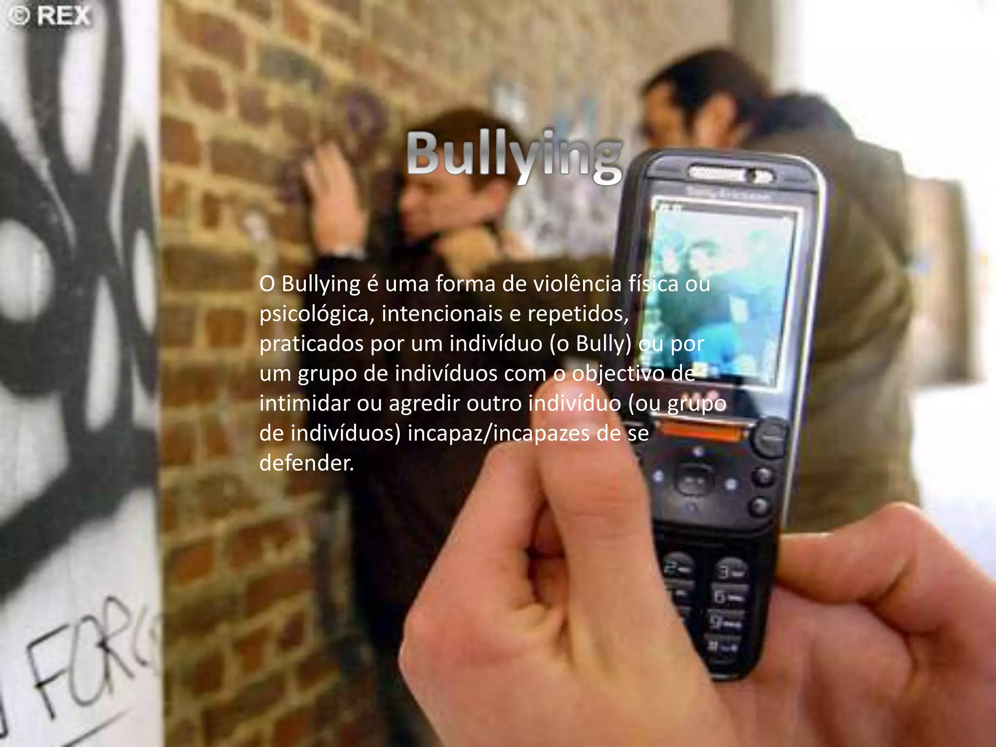 O bullying é definido como violência física ou psicológica intencional e repetida contra alguém incapaz de se defender, praticada por um indivíduo ou grupo com mais poder para intimidar ou agredir a vítima. Comportamentos de bullying são agressivos, negativos e frequentes, ocorrendo em uma relação de desequilíbrio de poder.