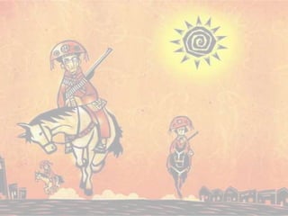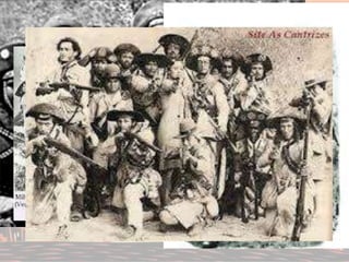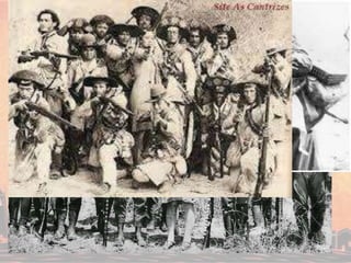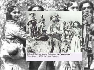 O cangaço era uma revolta armada de nômades nordestinos caracterizada. Havia três tipos de grupos de cangaço: defensivos, que defendiam terras; políticos, que defendiam interesses de fazendeiros; e independentes. O documento também fornece detalhes sobre alguns cangaceiros famosos como Virgulino, Jesuíno Brilhante e José Gomes Cabeleira.