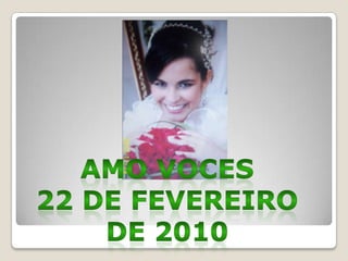 O documento é um resumo de 3 frases do casamento de Amanda em 22 de fevereiro de 2010. Apresenta uma citação bíblica sobre o amor de I Coríntios 13.1 e anuncia o casamento de Amanda e Daniel nessa data.