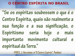 O documento descreve os objetivos e funcionamento de centros espíritas e da Sociedade Espírita de Paris fundada por Allan Kardec em 1858. Os centros espíritas têm como função estudar e praticar a Doutrina Espírita, prestar assistência espiritual e oferecer orientação. A Sociedade Espírita reúne pessoas sérias interessadas em esclarecimento e tem como objetivo estudar fenômenos espíritas e sua aplicação às ciências. Seus estatutos regulamentam a admissão de sócios, cobrança