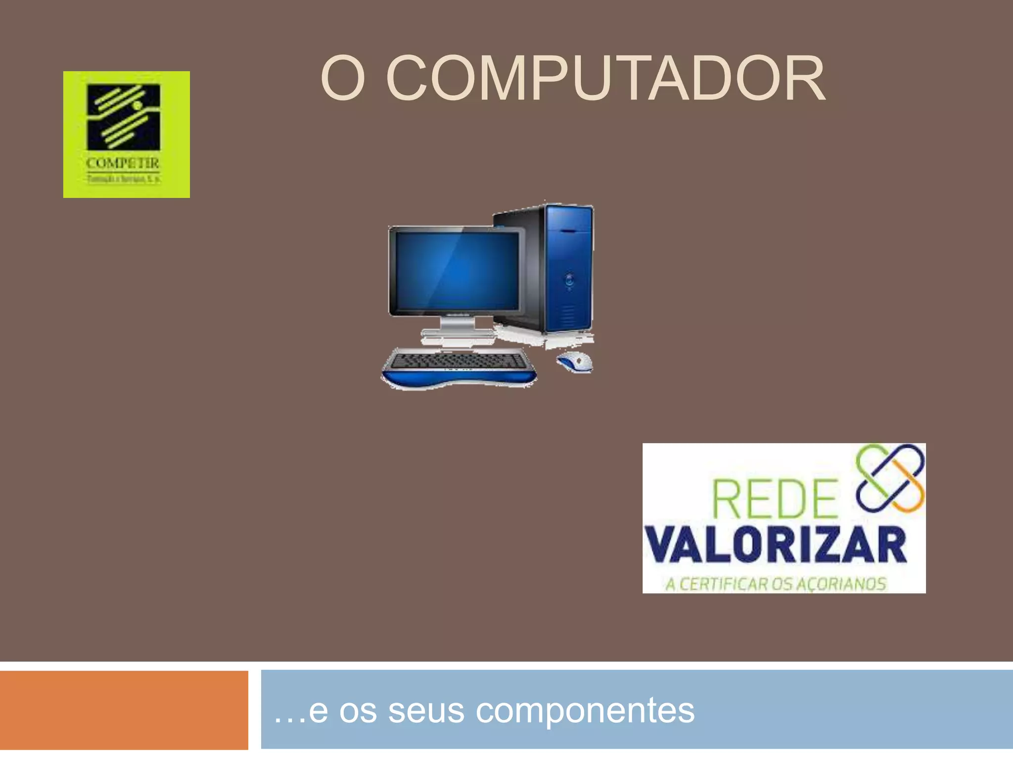 Este documento lista e descreve alguns dos principais componentes de um computador pessoal, incluindo o monitor, teclado, rato, componentes internos e impressora.