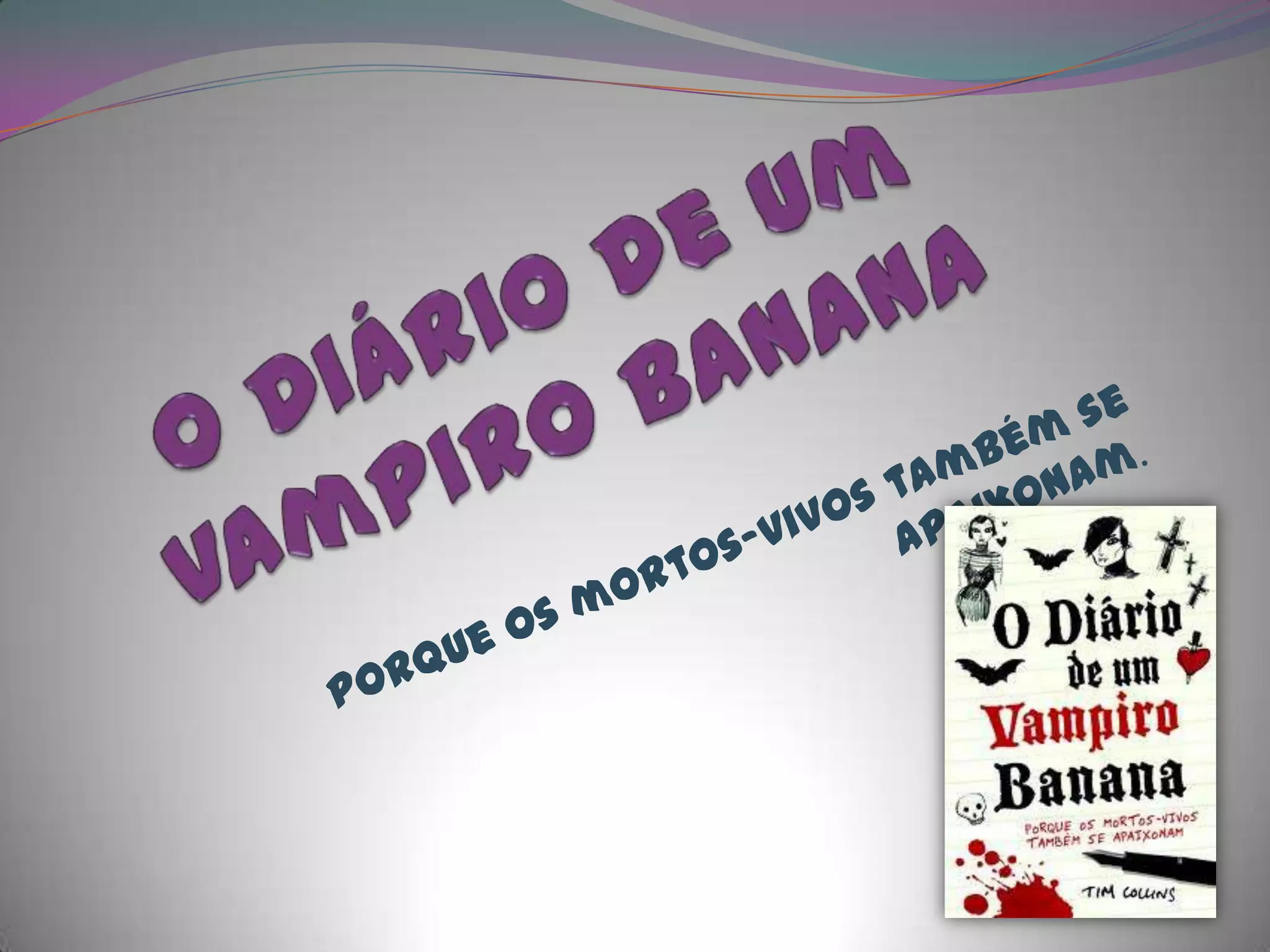 O documento resume o enredo do livro "O Diário de um Vampiro Banana", que narra a história de Nigel Mullet, um vampiro de 100 anos que se apaixona por uma humana chamada Chloe. A história se passa na escola frequentada por Nigel e descreve os sentimentos dele por meio de seu diário entre janeiro e julho.