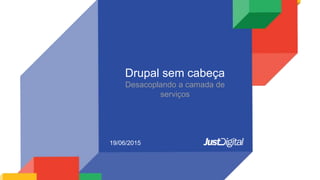O documento discute a arquitetura de desacoplamento da camada de serviços do Drupal, permitindo que outros sistemas acessem seus dados via APIs RESTful. Isso melhora o desempenho, modularização e reduz custos ao permitir que outras aplicações consumam os dados do Drupal de forma independente. Ferramentas como o módulo Rest do Drupal 8 e Views facilitam a implementação dessa arquitetura sem cabeça.