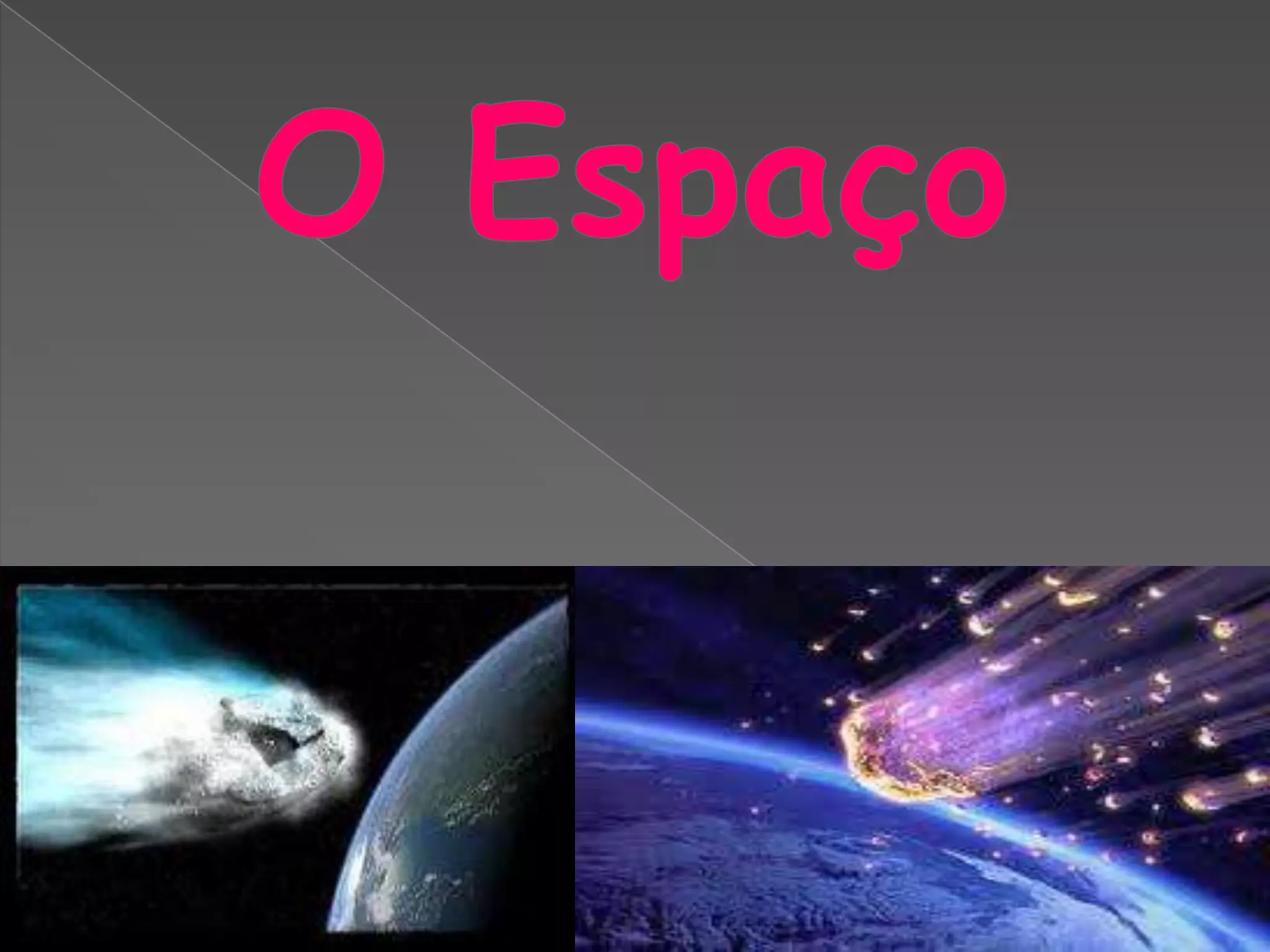 O documento fornece informações sobre o espaço e o Sistema Solar, descrevendo os planetas, luas, estrelas e galáxias. Explica que o Sistema Solar é constituído pelo Sol e objetos que orbitam ao seu redor, como planetas, luas e cometas. Também descreve cada planeta do Sistema Solar, suas características e distâncias em relação ao Sol e outros corpos celestes.
