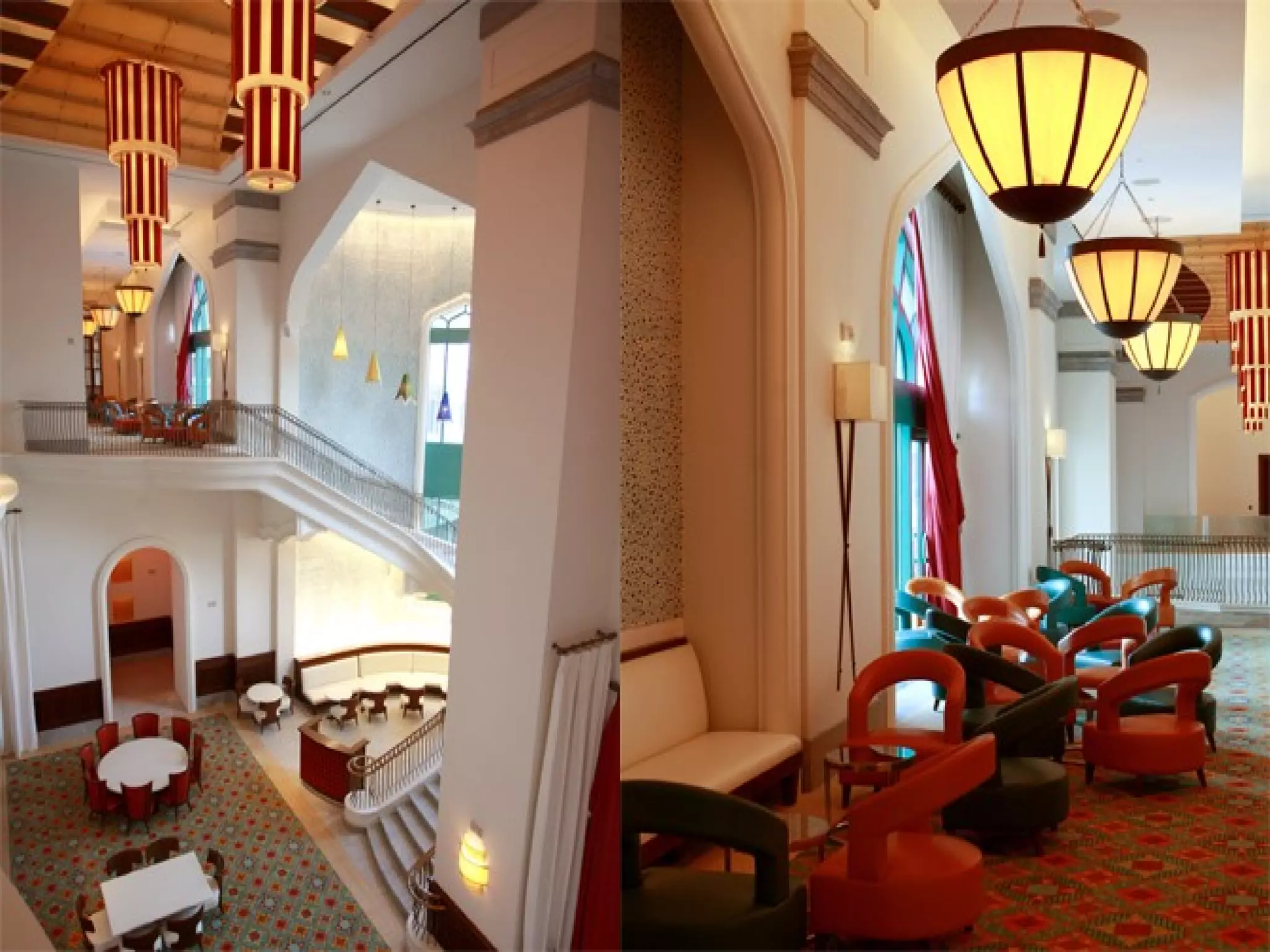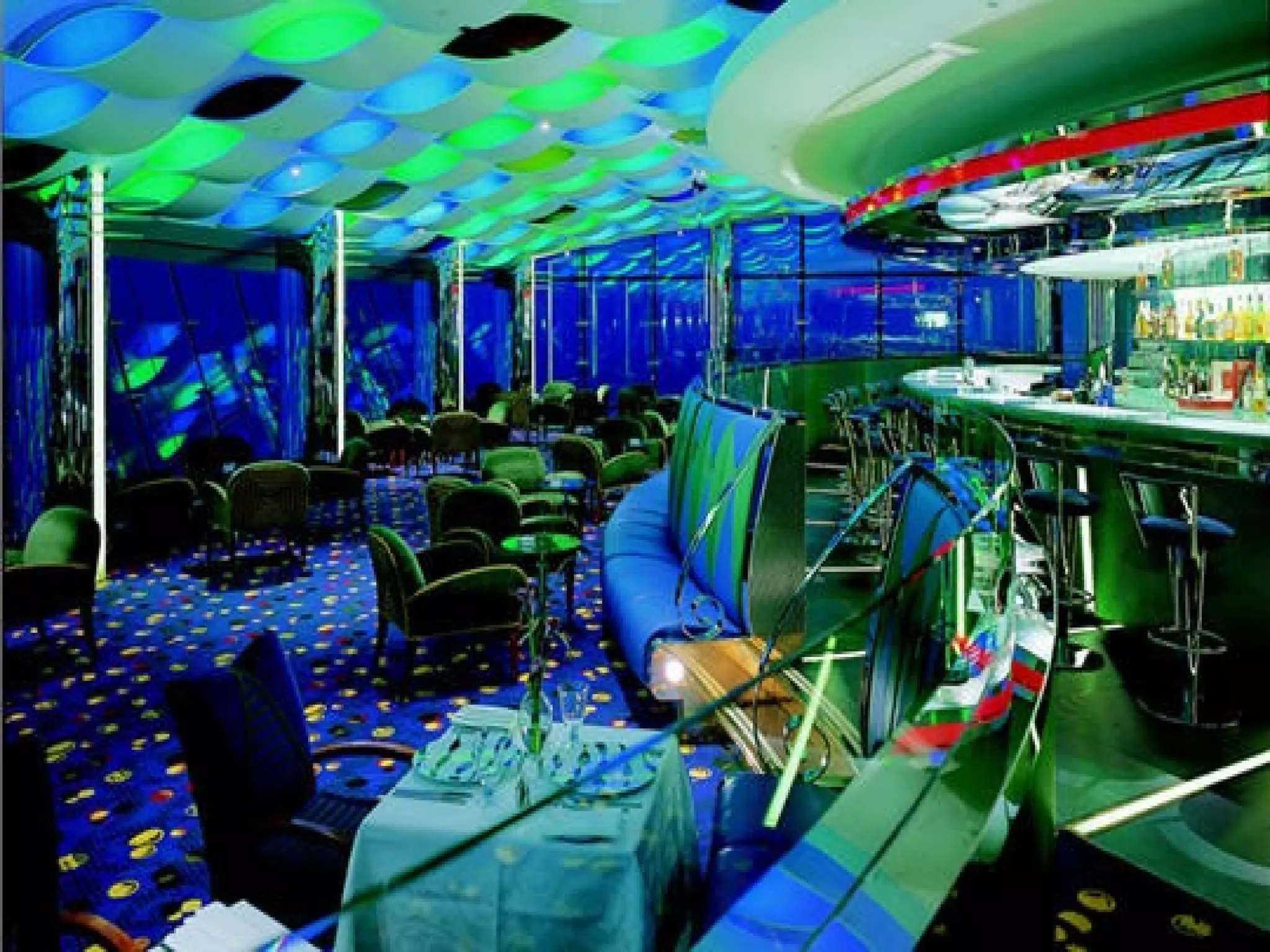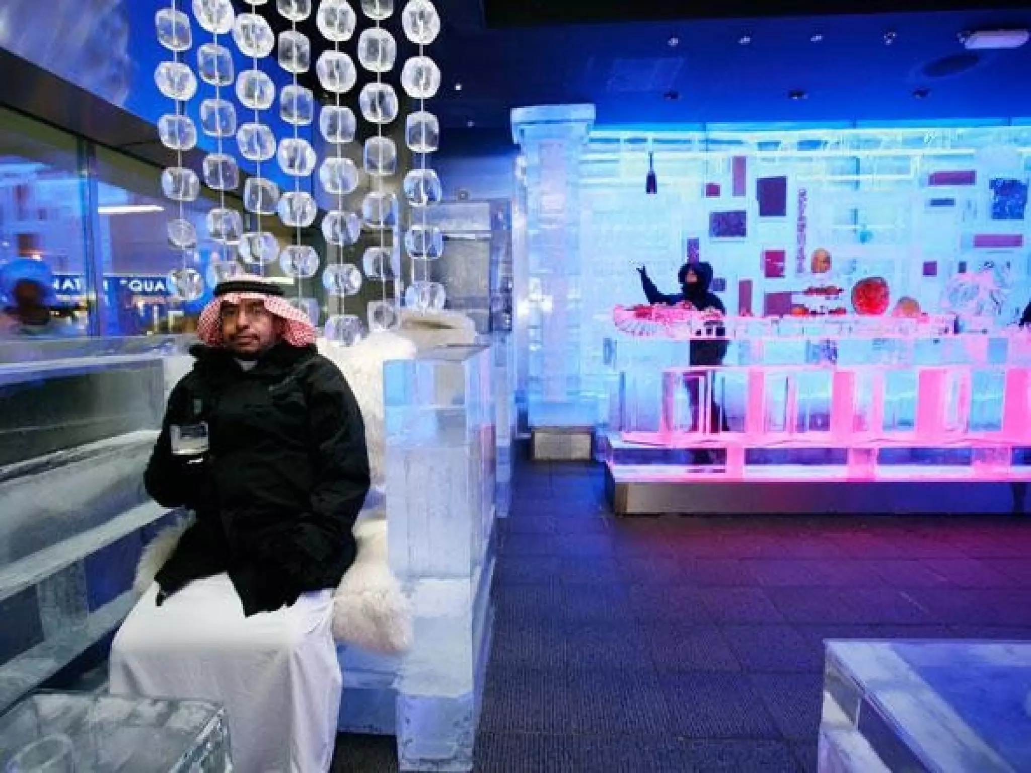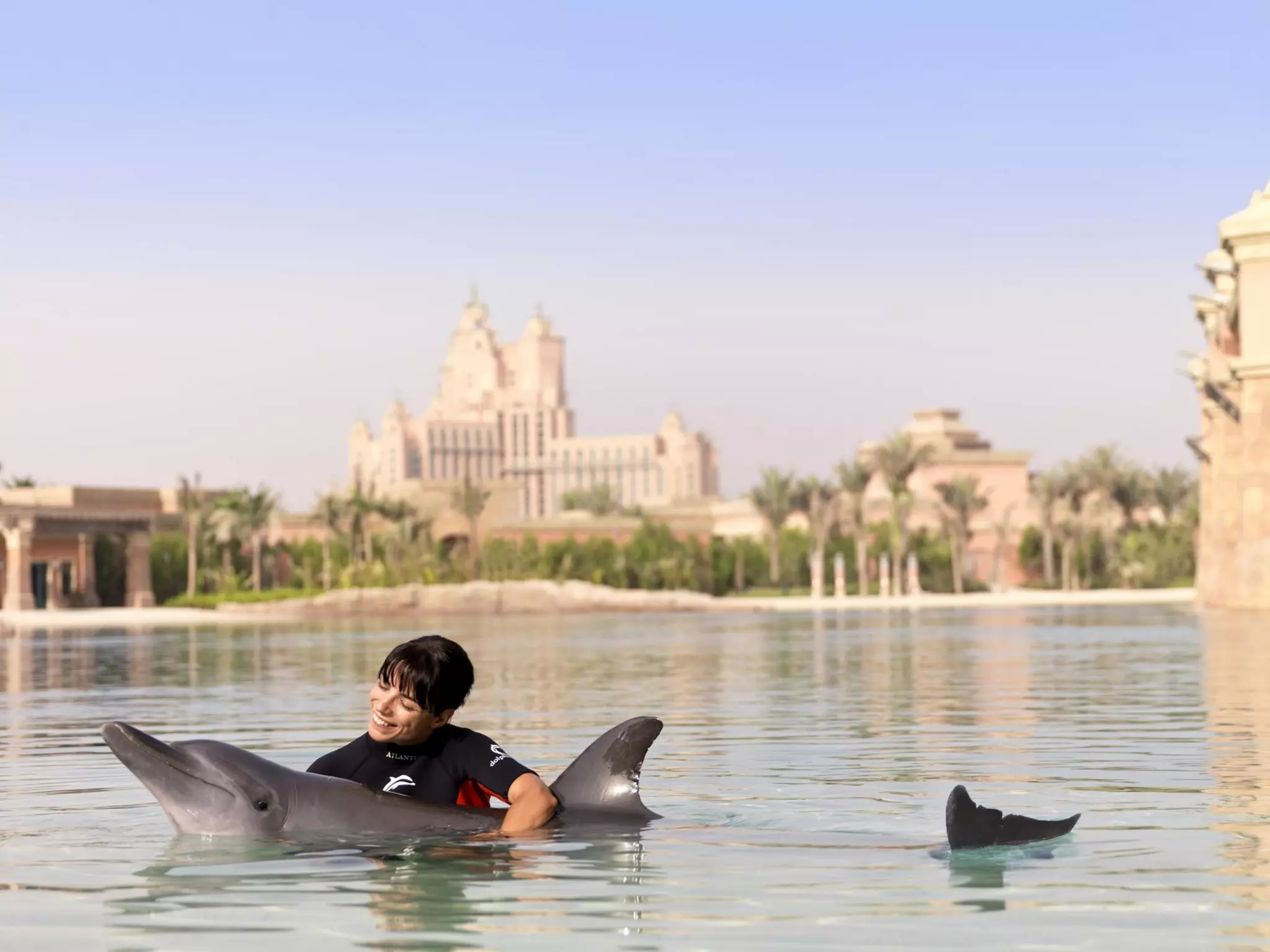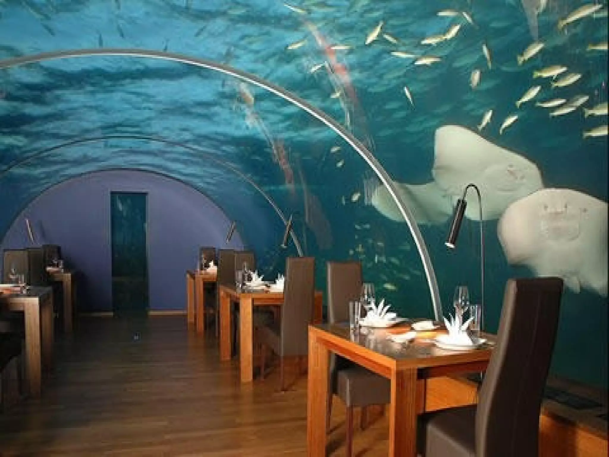 O documento descreve o aquário gigante de Dubai, que inclui galerias de lojas, hotéis e restaurantes, com detalhes sobre o hall de entrada, os tubos dentro do aquário, patinação olímpica, telas gigantes, boutiques do centro comercial, hotéis e um delphinarium, com espetáculos de som e luz à noite.