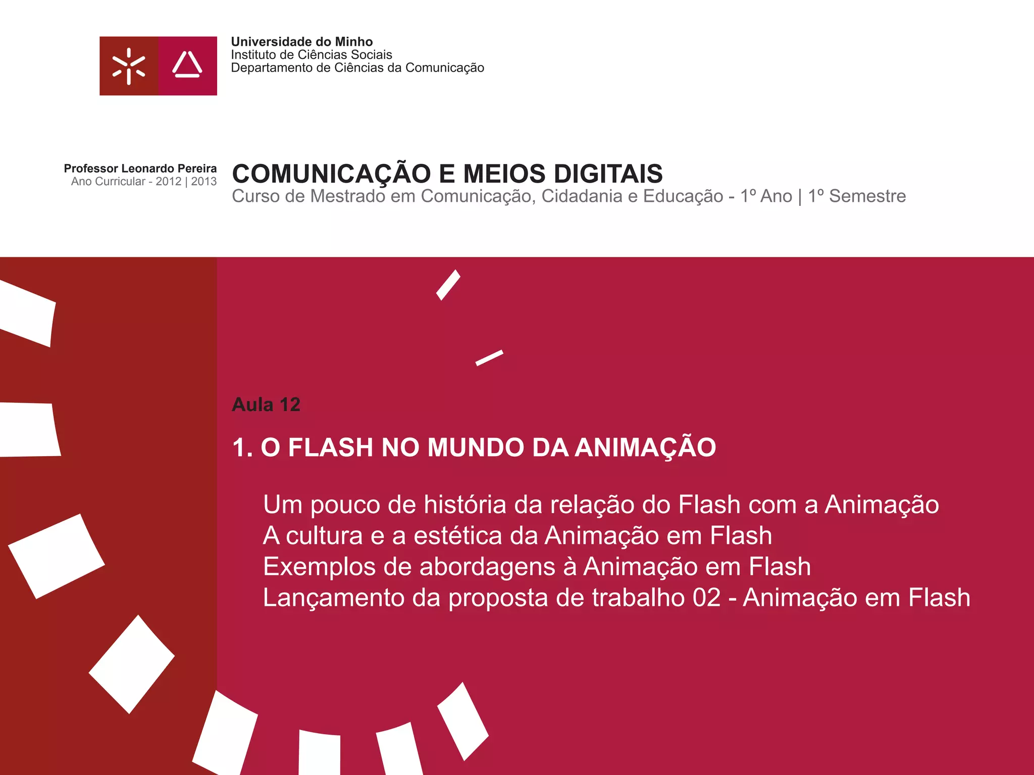 Este documento apresenta uma proposta de trabalho para os alunos produzirem uma animação em Flash com duração entre 30 segundos e 1 minuto. Os alunos trabalharão em pares para criar uma animação original com narrativa clara utilizando apenas imagens de sua autoria. A proposta destaca requisitos técnicos e instruções para a entrega do trabalho.