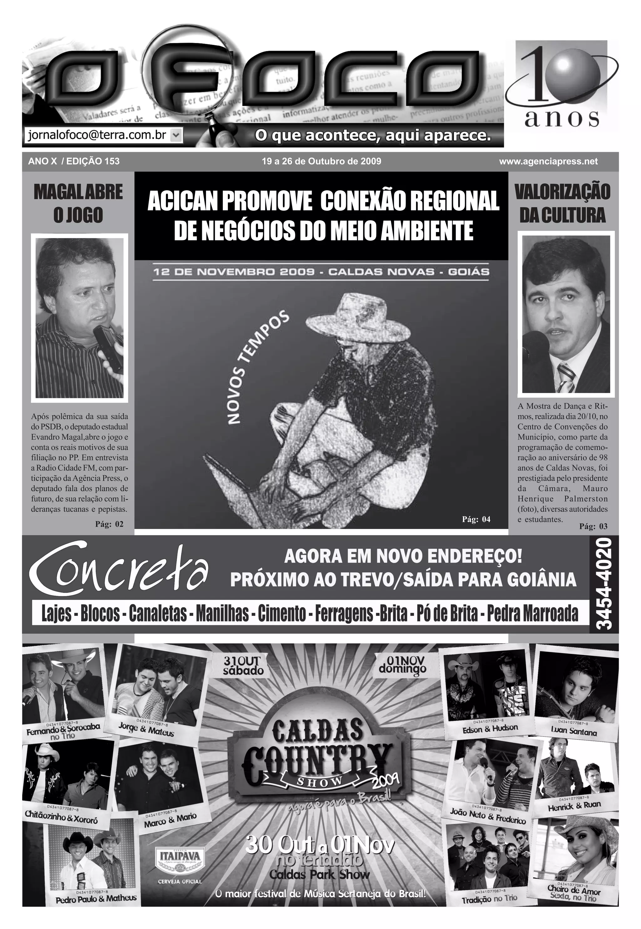 O documento resume notícias locais e nacionais sobre política, cultura e economia. Em Caldas Novas, houve uma mostra de dança e ritmos que prestigiou autoridades locais. No cenário político, questiona-se quais serão os candidatos a deputado estadual e federal na próxima eleição que realmente representem os interesses da cidade. A nível nacional, o relator da ONU sobre direitos indígenas elogia as políticas brasileiras para esses povos, mas aponta problemas de pobreza.