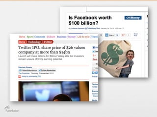 O documento discute o futuro do Big Data, abordando como os dados em grande volume estão sendo usados em diversas áreas como pesquisa científica, mercado financeiro e redes sociais. Também apresenta como o barateamento do processamento e armazenamento permitiu novas aplicações em publicidade, vendas online e análise de tráfego.