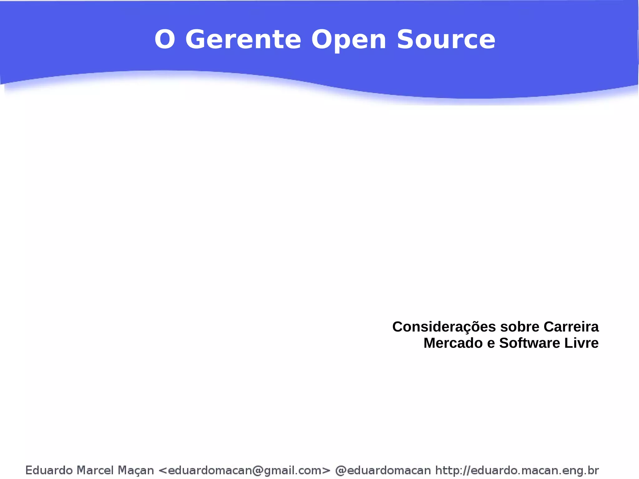 O documento discute considerações sobre carreiras em TI, software livre e inovação. Aborda os desafios de carreiras em TI, como o rápido ritmo de obsolescência do conhecimento e a limitada oportunidade para pesquisa no Brasil. Defende que o software livre pode ser parte da solução, permitindo ampliar habilidades e migrar para cargos de gestão. Também lista ferramentas e metodologias ágeis usadas em projetos de TI.