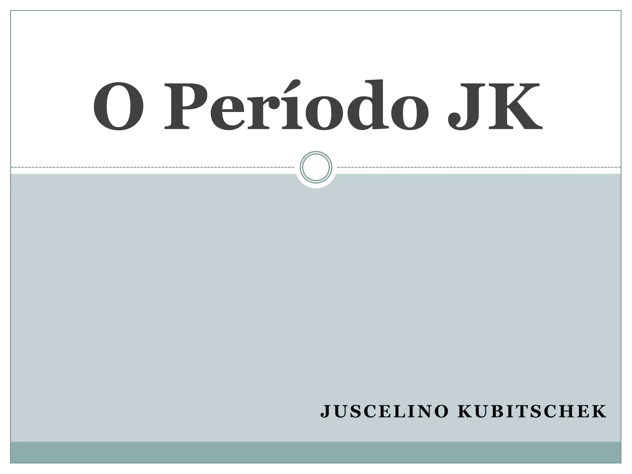 O documento descreve o período do governo de Juscelino Kubitschek no Brasil entre 1956-1961. Durante seu governo, JK incentivou o desenvolvimento econômico do país através da industrialização e grandes projetos de infraestrutura. Sua maior realização foi a construção da nova capital Brasília. No entanto, seu modelo desenvolvimentista também aumentou a dívida externa e a inflação.