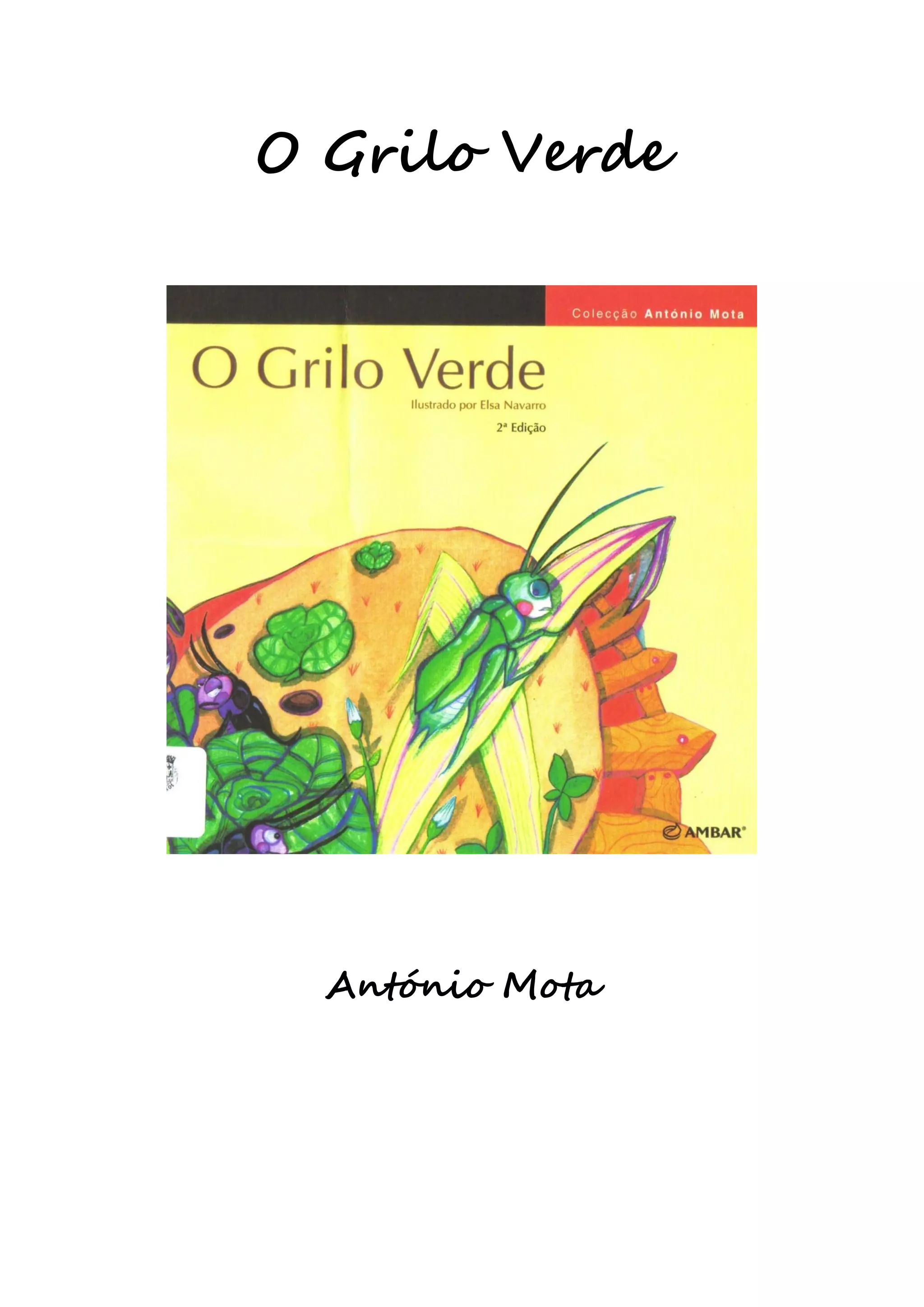O documento apresenta um guia de leitura do livro "O Grilo Verde" de António Mota. O guia inclui cinco atividades com perguntas sobre o conteúdo lido até aquele ponto do livro. As atividades abordam a chegada de um grilo verde à horta do tio Manuel Liró e a reação dos outros grilos pretos.