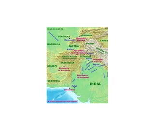 2) A ambiciosa expansão do império de Alexandre para a Ásia Central e norte da Índia;