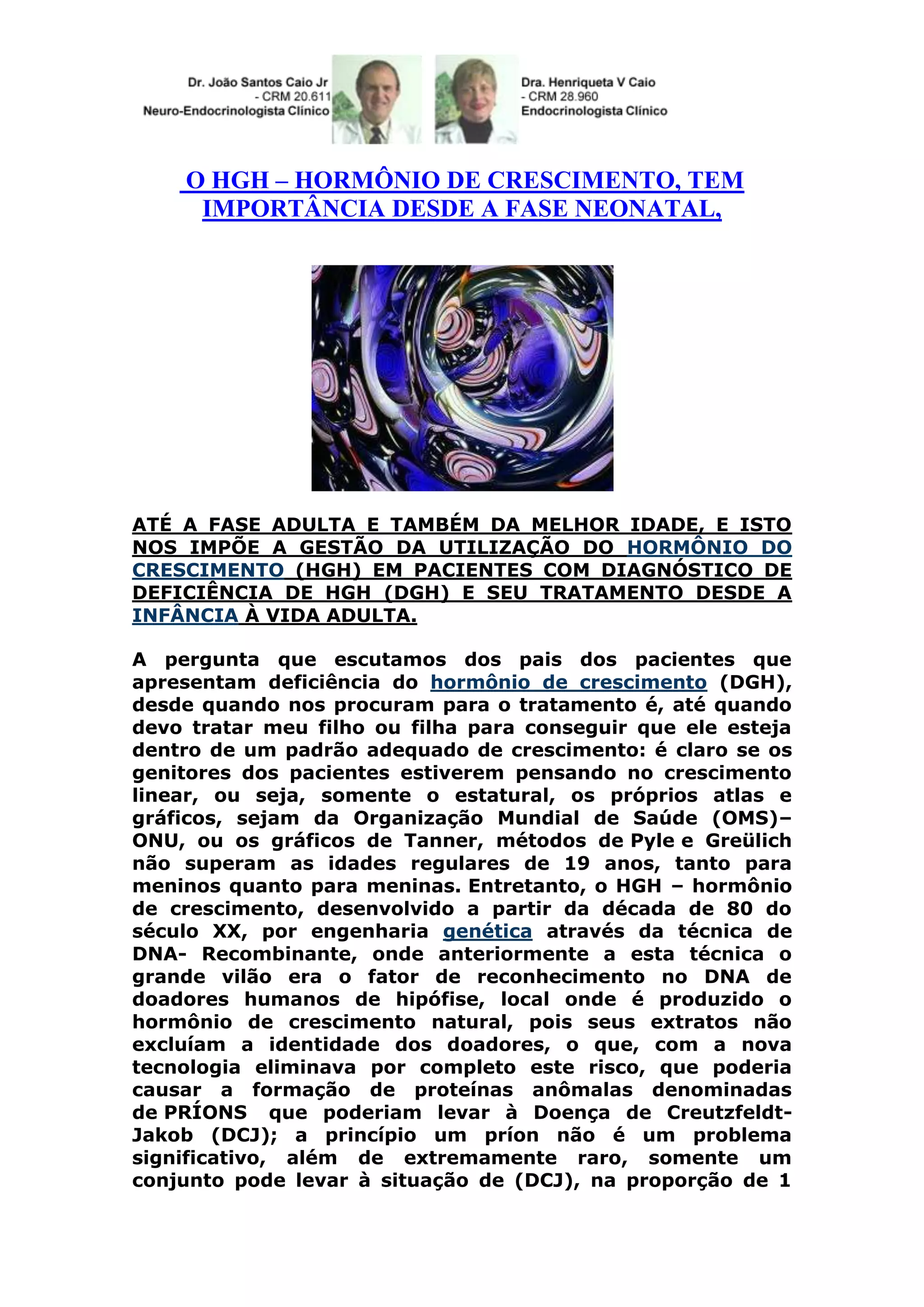 O documento discute a importância do hormônio do crescimento desde a infância até a vida adulta. Ele explica que o tratamento com hormônio do crescimento em pacientes com deficiência do hormônio do crescimento tem benefícios não apenas no crescimento estatural, mas também na composição corporal, saúde óssea e perfis de risco cardiovascular. O documento argumenta que o tratamento não deve ser interrompido quando o crescimento é concluído, mas deve continuar na vida adulta.