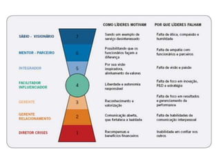 O documento fornece informações sobre liderança e coaching. Aborda tópicos como autoconhecimento, gestão do tempo, inteligências necessárias para líderes e gerenciamento de conflitos. O foco é empoderar os leitores a alcançarem seu máximo potencial por meio do desenvolvimento pessoal e profissional contínuo.