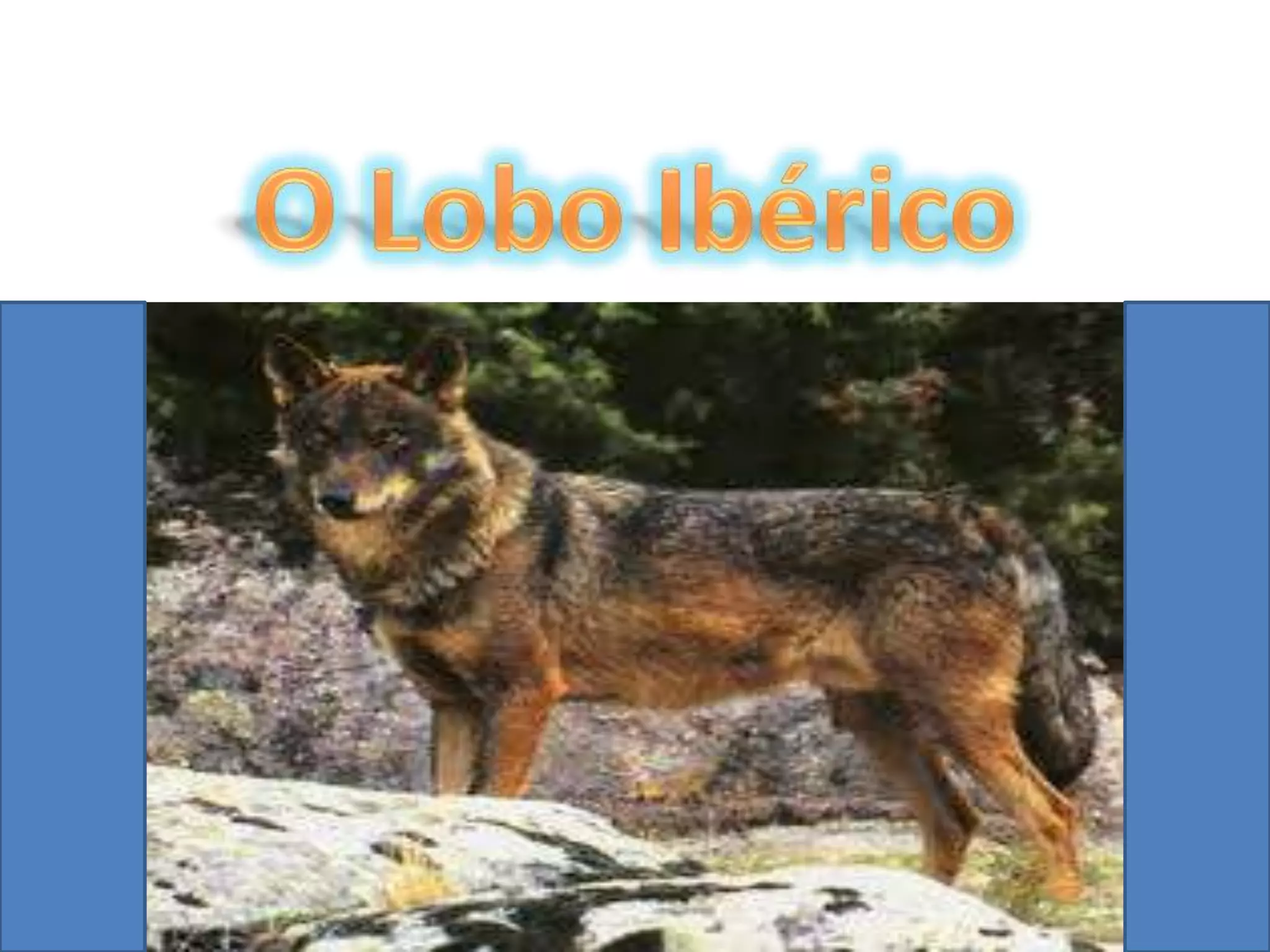 O documento resume as características do lobo ibérico, incluindo seu habitat na Península Ibérica, alimentação carnívora, reprodução em alcateias de 3 a 8 filhotes, e esforços de conservação em Portugal e Espanha onde sua caça é proibida vs permitida, respectivamente.