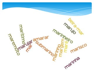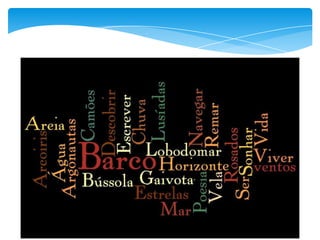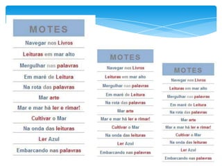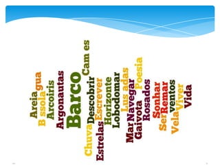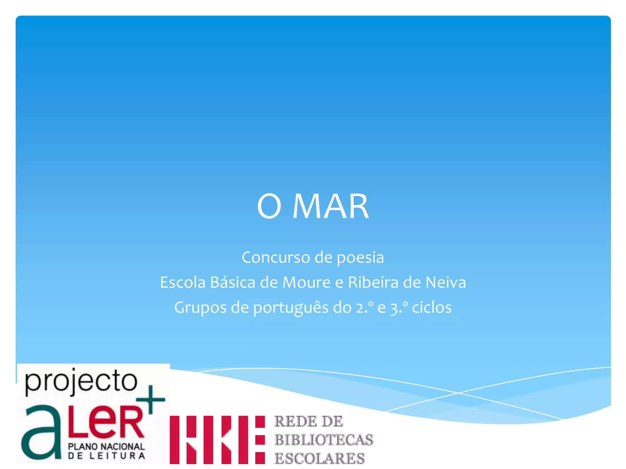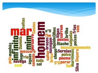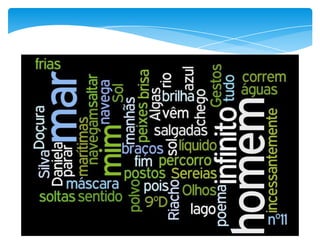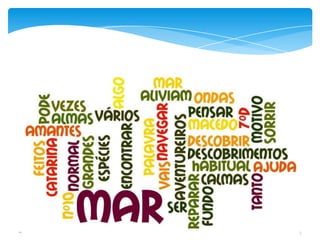 O documento apresenta 3 poemas sobre o mar escritos por alunos do 2o e 3o ciclos. Os poemas descrevem o mar como um lugar de descobertas, beleza e infinitude, capaz de aliviar as almas e inspirar pensamentos através de suas ondas e sons.