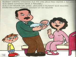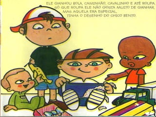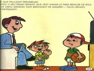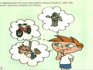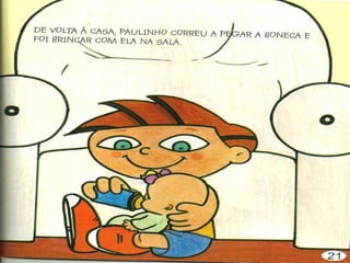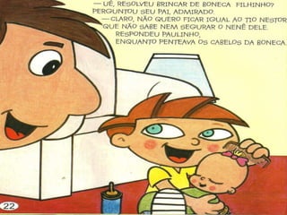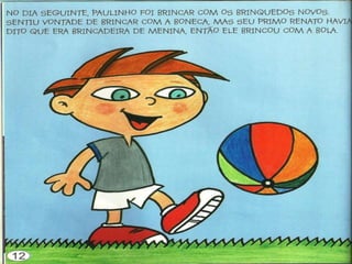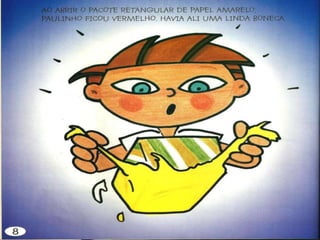 O texto conta a história de um menino que ganhou uma boneca de presente, contra os estereótipos de gênero. Apesar de inicialmente estranhar, ele acaba se divertindo com o brinquedo.