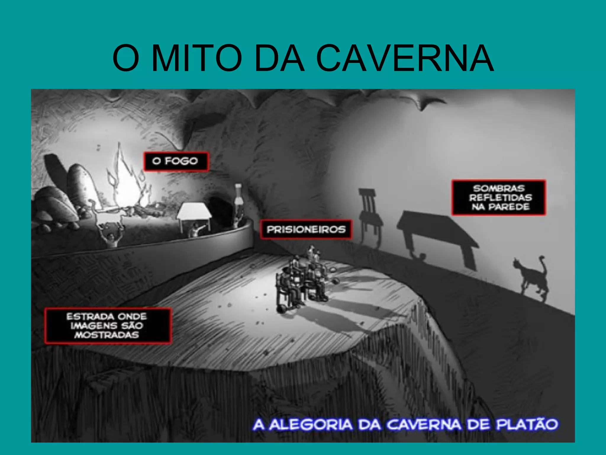 O texto descreve uma alegoria de Platão sobre prisioneiros presos em uma caverna desde a infância, vendo apenas sombras projetadas na parede. Um prisioneiro libertado descobre a verdadeira realidade fora da caverna, mas é rejeitado pelos outros prisioneiros quando tenta libertá-los.