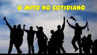 O documento discute como o mito ainda existe através de crenças, medos e desejos, mas tem menos poder do que no passado devido ao pensamento crítico. Dois exemplos de mitos discutidos são James Dean, o ícone da juventude rebelde, e Marilyn Monroe, o símbolo sexual. O documento também aborda como rituais seculares preservam aspectos do mito e como o pensamento reflexivo complementa o mito na sociedade moderna.