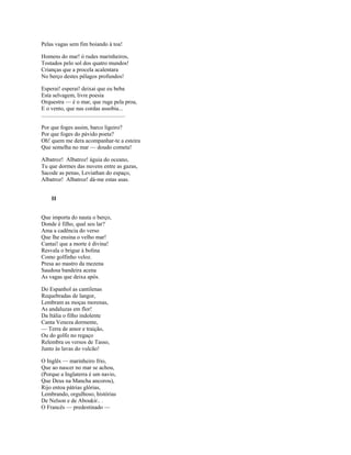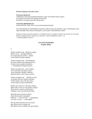 O poema descreve a cena horrível de um navio negreiro transportando escravos africanos em condições desumanas. Os escravos são mostrados dançando ao som de chicotes em meio a gritos, sangue e lágrimas. O poeta pergunta a Deus se tal cena de horror pode existir perante os céus e pede ao mar e aos ventos que apaguem tal atrocidade.