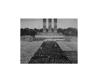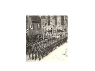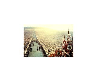 O documento resume a história de Adolf Hitler e a ascensão do Nazismo na Alemanha nos anos 1920-1930. Detalha a vida de Hitler, a formação do Partido Nazista, a tomada do poder por Hitler em 1933 após ser nomeado Chanceler da Alemanha, e o estabelecimento de uma ditadura nazista com controle totalitário sobre a sociedade alemã.