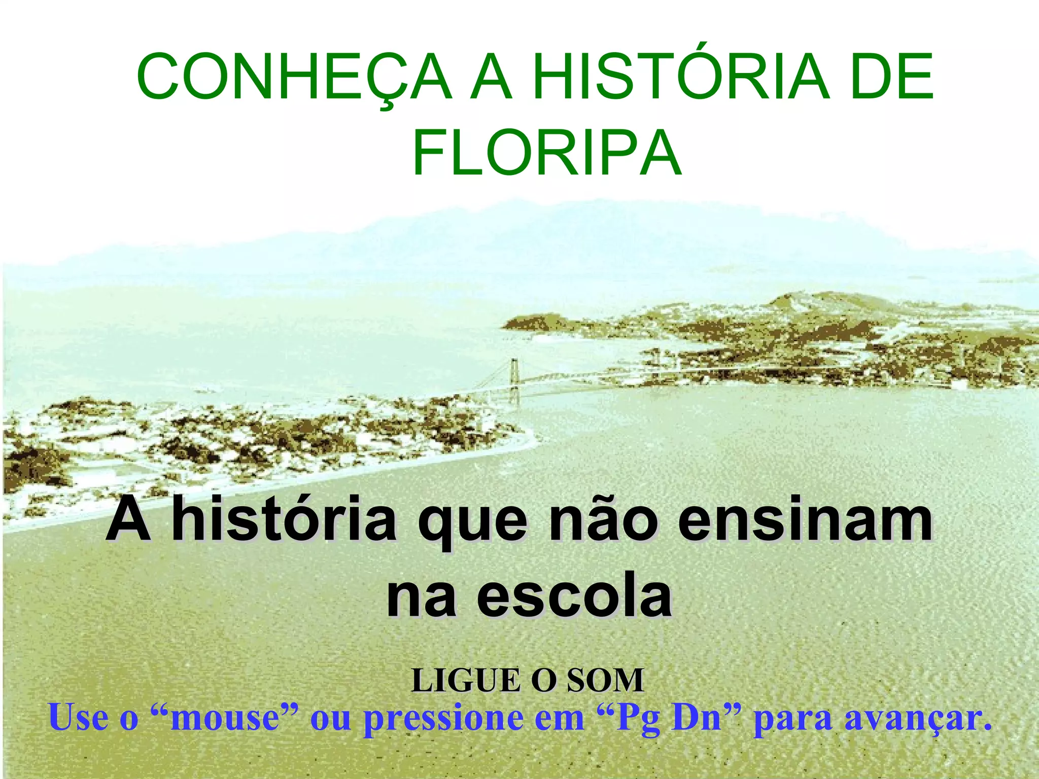 1) O documento descreve a história da cidade de Florianópolis no Brasil, originalmente chamada de Ilha do Desterro. Em 1894, o nome foi alterado para Florianópolis em homenagem ao presidente Floriano Peixoto, após ele violentamente reprimir uma rebelião na ilha.
