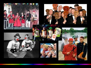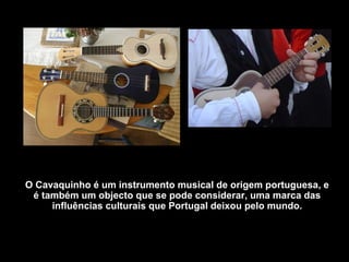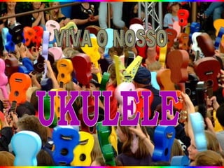 O documento descreve a origem e história do ukulele, começando com seu ancestral, o cavaquinho português. Em 1879, portugueses levaram o cavaquinho para o Havaí, onde ganhou popularidade e o nome "ukulele", que significa "pulga saltitante". Apesar de ter origem portuguesa, o ukulele é pouco conhecido em Portugal, ao contrário do fenômeno global que se tornou em outros países.