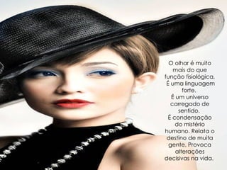 O documento discute o olhar como uma forma de linguagem poderosa que carrega significado e revela o mistério humano. O olhar pode provocar mudanças decisivas na vida das pessoas e existe uma variedade de olhares, desde o olhar de perdão até o olhar opressor. O documento também discute como o olhar pode ser usado para julgar e condenar os outros.