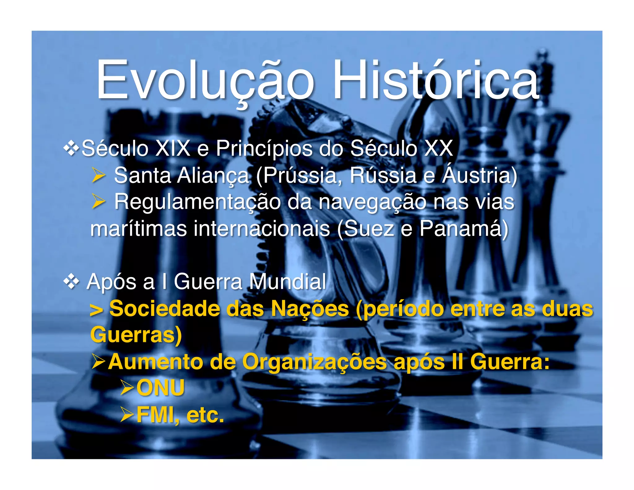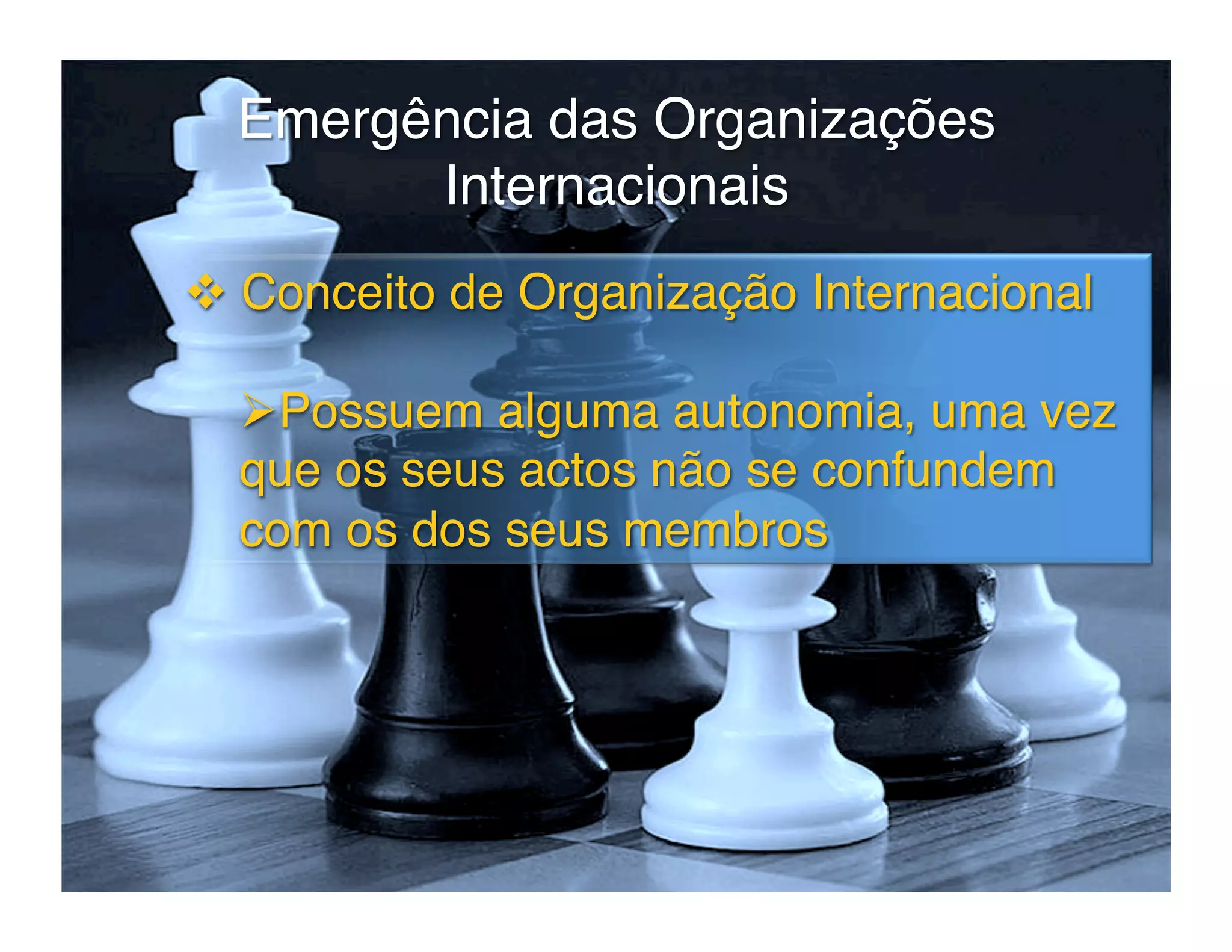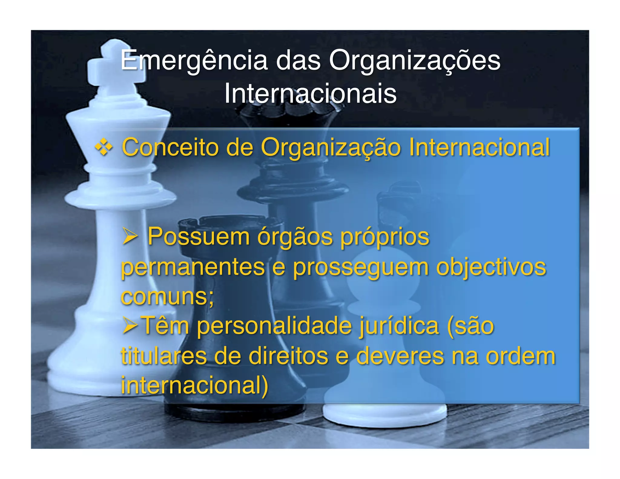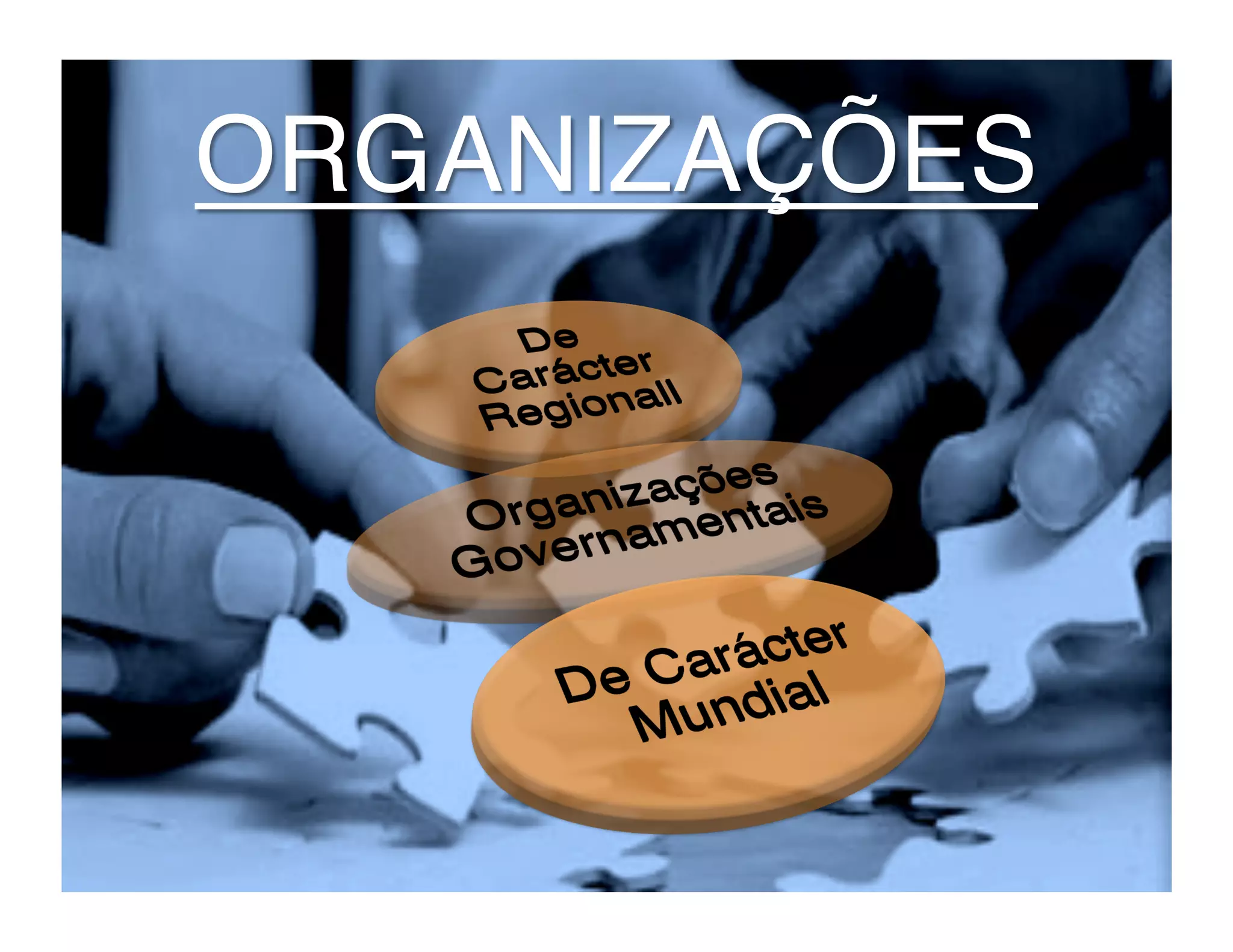 O documento descreve várias organizações internacionais, incluindo a ONU e suas agências especializadas, que trabalham em domínios como o social, econômico, político e da defesa, bem como organizações não-governamentais que atuam em áreas humanitárias e ambientais.