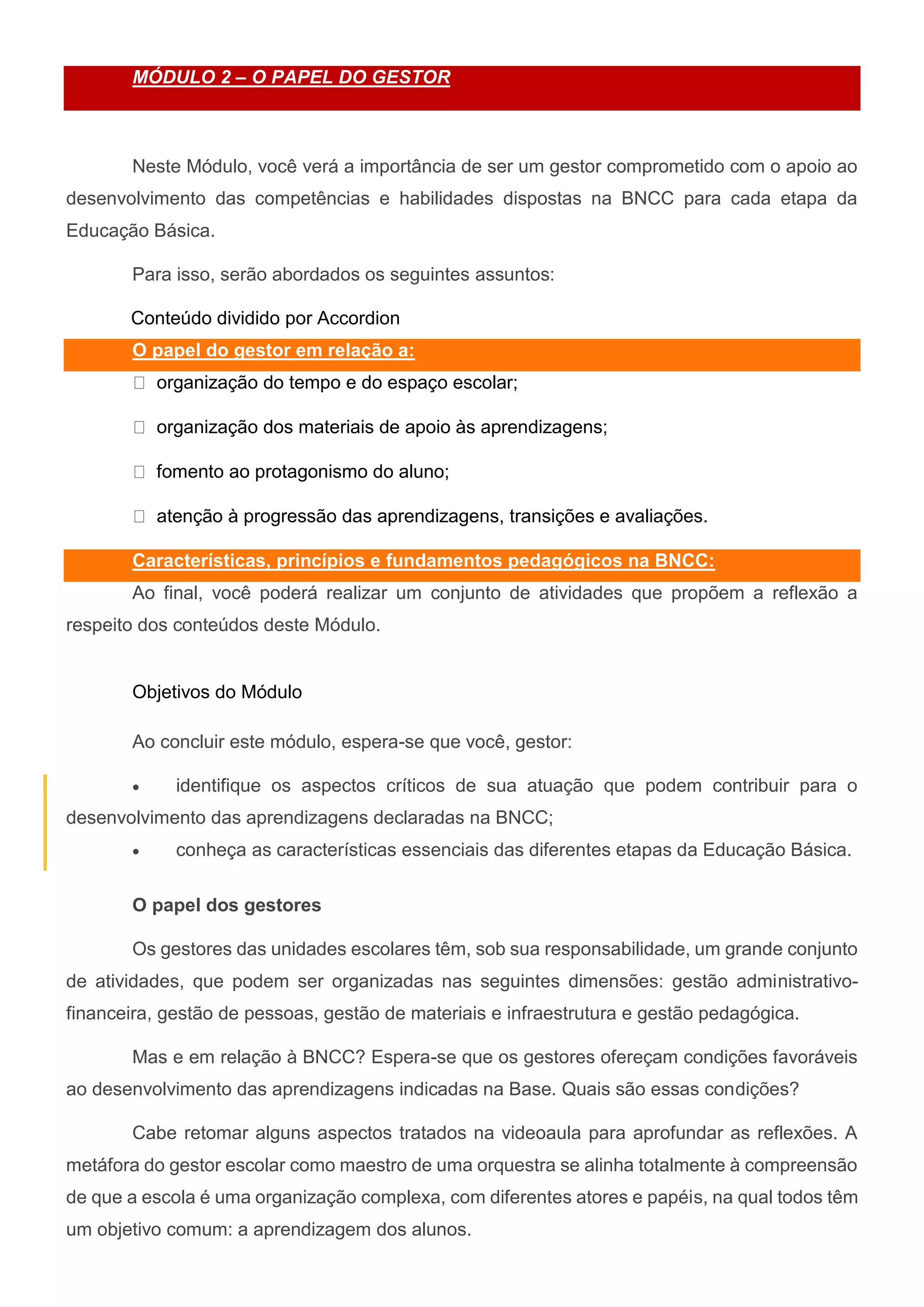 Este documento discute o papel dos gestores escolares em apoiar o desenvolvimento das competências definidas na Base Nacional Comum Curricular (BNCC). Aborda a importância da organização do tempo, espaço e materiais pedagógicos, do protagonismo estudantil e da avaliação do progresso de aprendizagem. Também apresenta os principais desafios nas etapas do Ensino Fundamental e Médio com base nos resultados das avaliações nacionais.