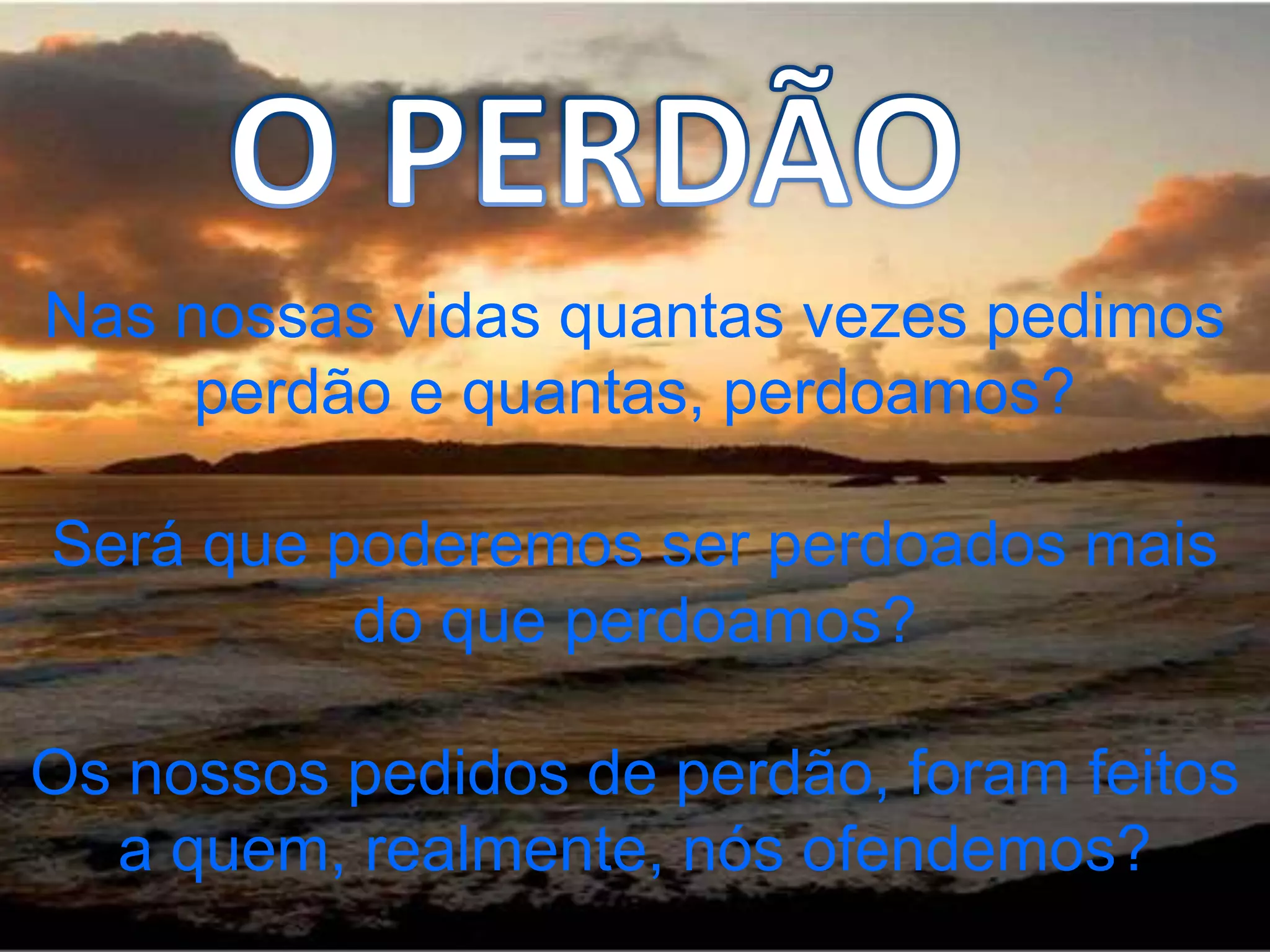 O documento discute a importância de pedir perdão àqueles que realmente ofendemos e de perdoarmos da mesma forma que queremos ser perdoados. Argumenta que pedir perdão a quem não ferimos é ilusório e não repara nossos erros, e que aqueles que muito perdoam estão no mesmo nível daqueles que muito pedem perdão. Conclui pedindo sabedoria para pedirmos perdão somente àqueles que ferimos e nos esforçarmos para não cometer os mesmos erros no futuro.