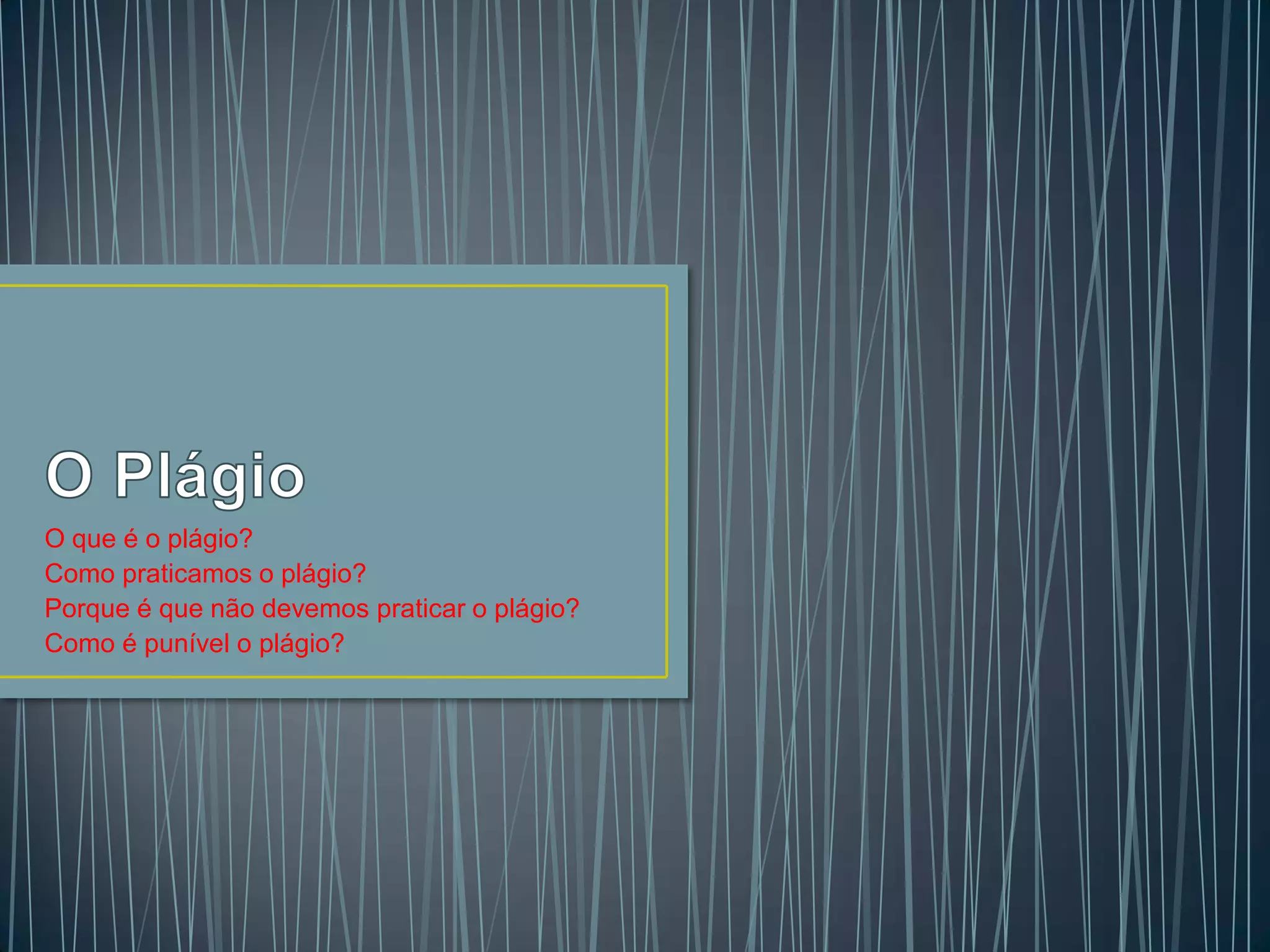 O documento discute o que é plágio, como é praticado, por que não devemos praticá-lo e como é punível. O plágio envolve copiar o trabalho de outra pessoa e apresentá-lo como seu, omitindo os créditos do autor original. É considerado um crime porque viola os direitos autorais.