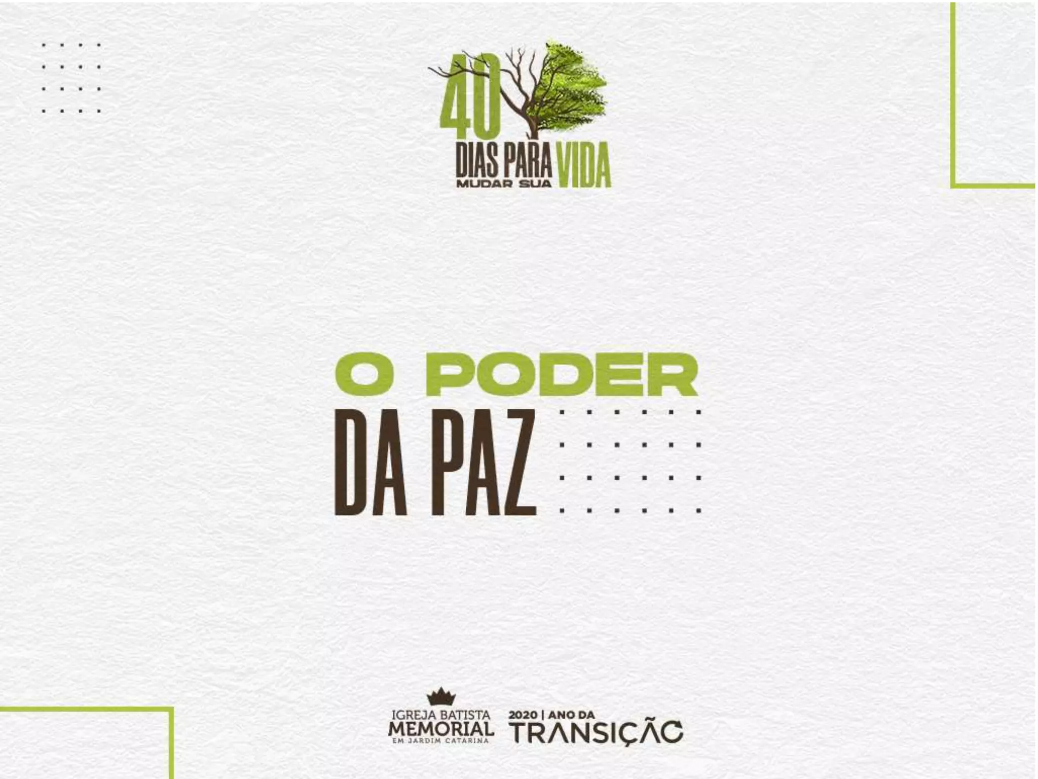 O documento discute como obter paz espiritual, emocional e nos relacionamentos através de seguir os princípios de Deus, confiar na Sua direção, concentrar-se na Sua presença e orar pedindo a Sua paz.