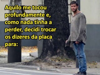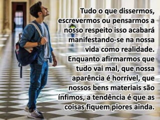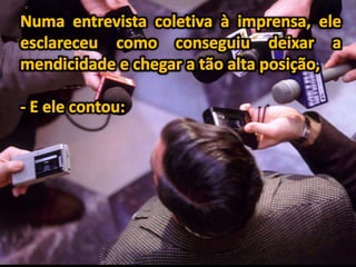 Um mendigo, que observava a crescente quantia de dinheiro sob seu colchão, é abordado por um executivo que o transforma após uma refeição e novas roupas. A história enfatiza a importância da autoafirmação positiva, independentemente das circunstâncias difíceis. Declarações de fé e otimismo são destacadas como ferramentas para mudar a percepção da vida.