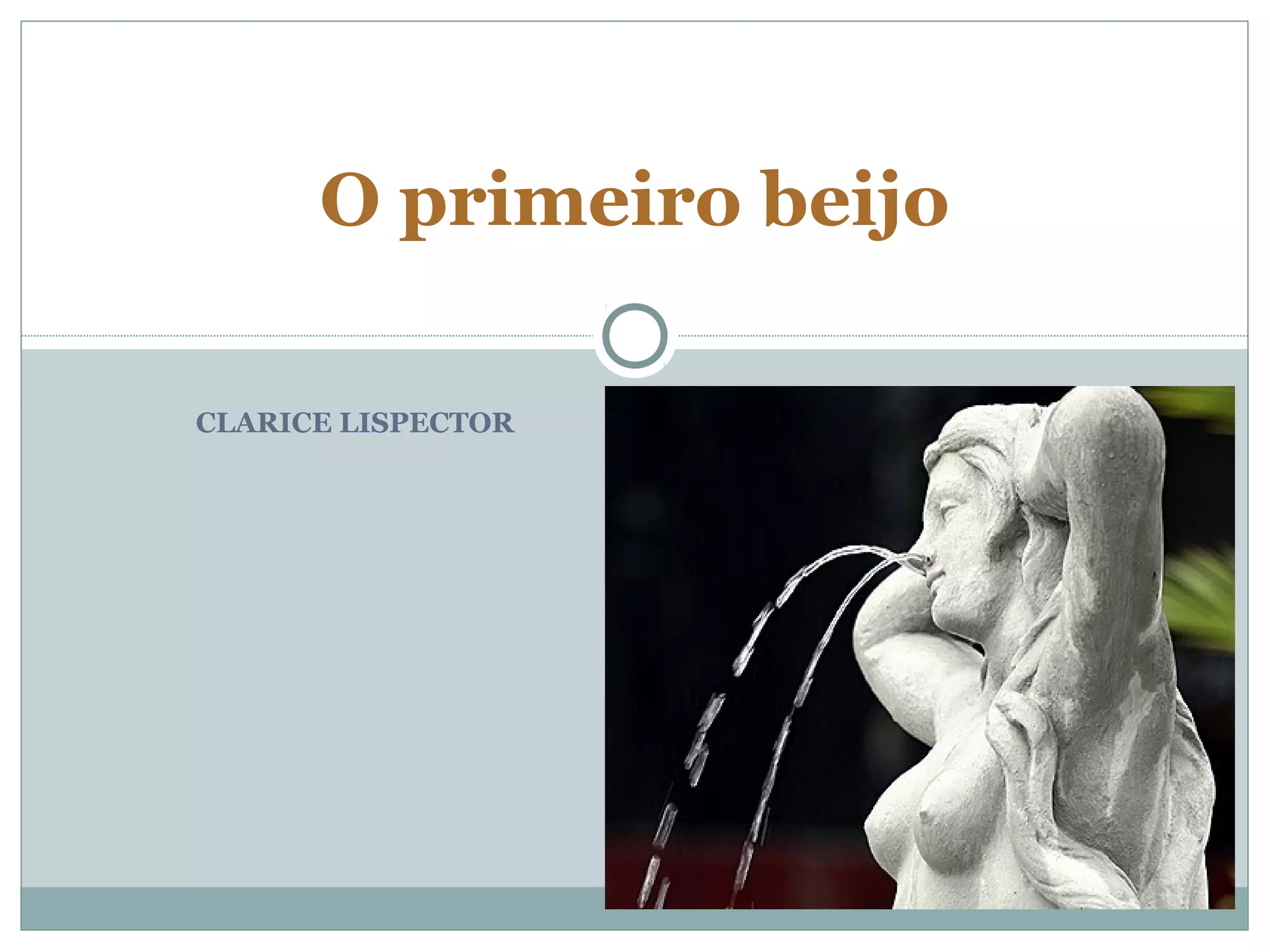 O documento discute o primeiro beijo da perspectiva de Clarice Lispector em sua obra "O primeiro beijo". Apresenta o contexto do tema do primeiro beijo e faz referências intertextuais a obras de arte que retratam beijos. Também fornece detalhes sobre a autora Clarice Lispector e sua abordagem estilística introspectiva.