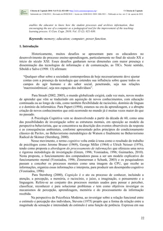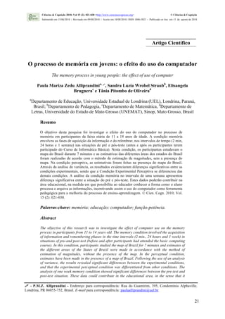 1) O documento investiga o efeito do uso do computador no processo de memória em jovens de 11 a 14 anos.